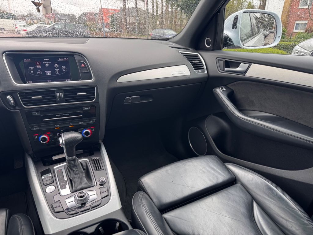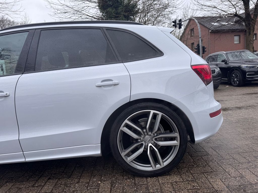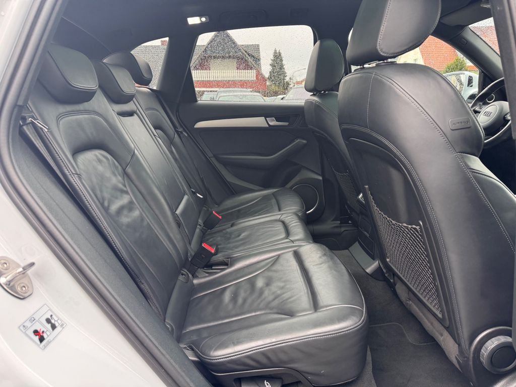 Dieser gepflegte Audi Q5 aus dem Jahr 2016 überzeugt durch seine umfangreiche Ausstattung und Vielseitigkeit. Der Diesel-Motor mit 190 PS und Allradantrieb bietet sowohl auf der Straße als auch im Gelände optimale Fahreigenschaften. Das Automatikgetriebe sorgt für komfortables Fahren, während die adaptive Geschwindigkeitsregelung lange Strecken angenehmer gestaltet. Die graue Metallic-Lackierung harmoniert perfekt mit dem schwarzen Lederinterieur.Die Sicherheitsausstattung lässt kaum Wünsche offen: Kollisionsvermeidungssystem, Spurhalteassistent, Totwinkelwarner und zahlreiche Airbags schützen Sie und Ihre Mitfahrer. Das Panoramaglasdach, die elektrische Heckklappe und die beheizten Sitze erhöhen den Komfort erheblich. Dank vollständiger Servicehistorie und Euro-6-Norm ist dieser Q5 eine verlässliche Wahl.