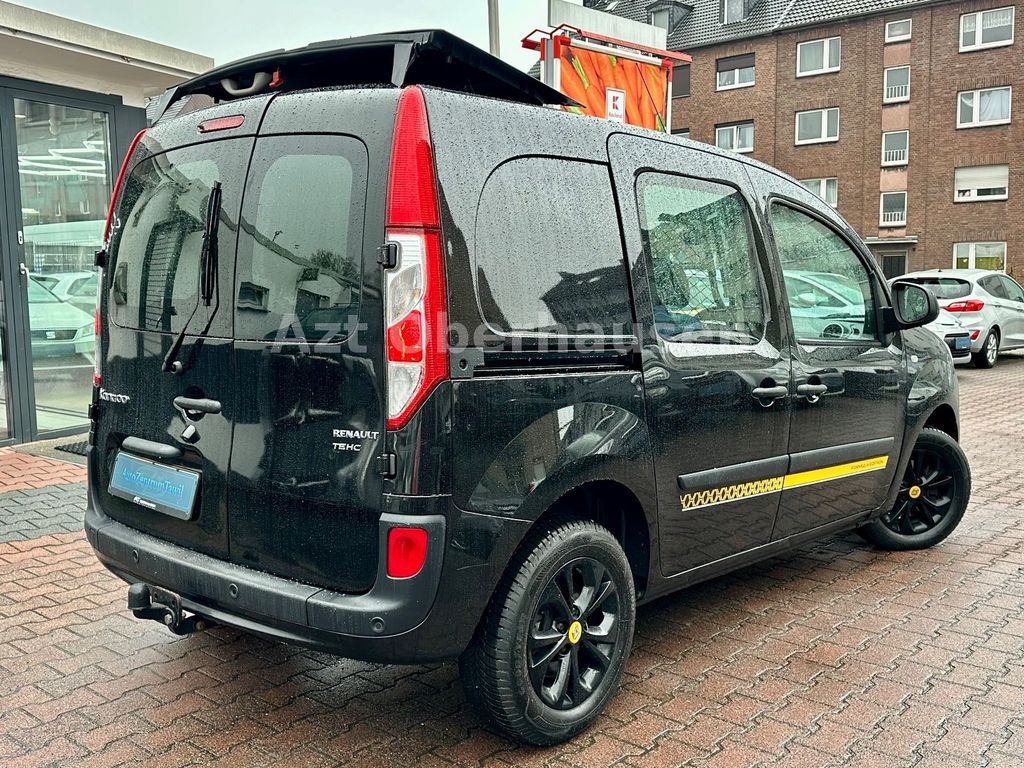 Das Fahrzeug ist ein echter Hingucker: schwarze Außenfarbe mit gelben Akzenten und Alufelgen, die dem Kangoo einen sportlichen Charakter verleihen.