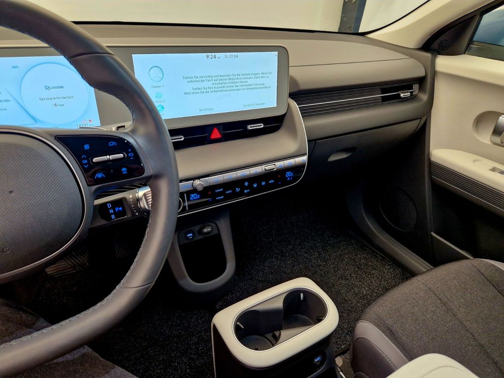 6 Lautsprecher, Ablagetasche an Vordersitzlehnen, Airbag Beifahrerseite, Airbag Beifahrerseite abschaltbar, Airbag Fahrerseite, Aktives Bremslicht (ESS), Antriebsart: Heckantrieb, Audio-Navigationssystem, Audiosystem: Radio RDS, Außenspiegel elektr. anklappbar, Außenspiegel elektr. verstell- und heizbar, beide, Außenspiegel lackiert, Außenspiegel Unterschale schwarz lackiert, Batterieheizsystem, Blinkleuchte in Außenspiegel integriert, Dachspoiler, Einparkhilfe hinten, Einschaltautomatik für Fahrlicht / Lichtsensor, Elektr. Bremskraftverteilung, Elektromotor 125 kW, Elektron. Stabilitätskontrolle (ESC) mit Bremsassistent, Fahrassistenz-System: aktiver Spurhalteassistent (LKAS, Lane Keep Assist System), Fahrassistenz-System: Aufmerksamkeits-Assistent, Fahrassistenz-System: Autobahnassistent (Highway Driving Assist, HDA), Fahrassistenz-System: Autonome Notbremsfunktion inkl. Frontkollisionswarnung (FCA), Fahrassistenz-System: Berganfahrhilfe, Fahrassistenz-System: Fahrprofilauswahl (Drive Mode), Fahrassistenz-System: Fernlichtassistent, Fahrassistenz-System: Insassenalarm (RSA), Fahrassistenz-System: Multikollisionsbremse (Multi Collision Brake), Fahrassistenz-System: Sicherheitssystem mit automatischem Notruf (ERA GLONASS / eCall), Fahrassistenz-System: Spurfolgeassistent (Lane Following Assist, LFA), Fahrassistenz-System: Verkehrszeichenerkennung, erweitert (Geschwindigkeits-Regel-/Begrenzeranlage), Fensterheber elektrisch vorn und hinten, mit Auf-/Ab-Automatik, Freisprecheinrichtung Bluetooth, Gepäckraumabdeckung / Rollo, Getriebe für Elektrofahrzeug, Getränkehalter hinten, Getränkehalter vorn, Gurtstraffer, Handschuhfach Schublade, Heckleuchten LED (Pixel-Design), Heckscheibe heizbar, Heckscheibenwischer, HV-Batterie 58 kWh (Lithium-Ionen), Instrumentenanzeige Farbdisplay 12,25 Zoll, Isofix-Aufnahmen für Kindersitz, Karosserie: 5-türig, Klimaautomatik 2-Zonen, Kopf-Airbag-System, Kopfstützen hinten verstellbar, Kühlergrill, Aktive Luftklappen, regelbar, Ladekabel mit Typ 2-Stecker, Ladevorrichtung On-Board-Lader (3-Phasen), Lendenwirbelstütze Sitz vorn links, elektr. verstellbar, Lenkrad mit Schaltwippen, Lenksäule (Lenkrad) höhenverstellbar, Lenksäule (Lenkrad) längsverstellbar, Leseleuchten vorn und hinten LED, Leuchtweitenregelung, LM-Felgen, Luftdüsen hinten, Mittelarmlehne hinten, Navigationsbasierte Adaptive Geschwindigkeitsregelanlage (Tempomat) mit Abstandsregelung (NSCC), Notladekabel (ICCB), Parkbremse elektrisch (EPB), Radioempfang digital (DAB+), Reifen-Reparaturkit, Reifendruck-Kontrollsystem, Rückfahrkamera, Rücksitzbank verschiebbar, Rücksitzlehne geteilt/klappbar, Schalt-/Wählhebel (Shift by Wire), Scheibenbeschlagerkennung / Regelung, Scheinwerfer Voll-LED, Seitenairbag vorn, Seitenairbag vorn mitte (Central Airbag), Seitenschutzleisten schwarz, Service-System: Remote Services (Blue Link), Sicherheitsgurte vorn höhenverstellbar, Sitz vorn links höhenverstellbar, Sitz vorn rechts höhenverstellbar, Sitzbezug / Polsterung: Stoff, Sitzheizung vorn, Smartphone Schnittstelle (Apple CarPlay & Android Auto), Sonnenblenden mit Spiegel, Start-Stop-Knopf, Steckdose (12V-Anschluß) vorn, Stoßfänger vorn mit Applikationen (schwarz), Türgriffe außen ausfahrbar / versenkbar, Türgriffe außen Wagenfarbe, USB-Anschluss hinten, USB-Anschluss Mittelkonsole, Verglasung getönt, Vorheizsystem für Batterie, Warnanlage für Sicherheitsgurte, Fahrer-/Beifahrerseite