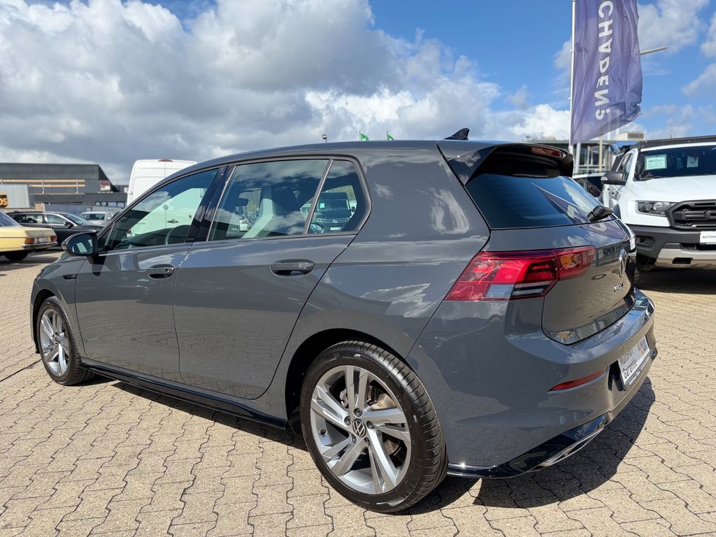 3-Punkt-Sicherheitsgurt hinten mitte, Airbag Fahrer-/Beifahrerseite, Beifahrerairbag abschaltbar, Ambiente-Beleuchtung (30 Farben), Antennen-Diversity, Audiosystem Composition (USB, Bluetooth, Touchscreen-Farbdisplay), Ausstattung R-Line, Automatische Fahrlichtschaltung (ALS) mit Leaving Home / Coming-Home-Lichtfunktion, Außenspiegel elektr. verstell- und heizbar, mit Memory, Außenspiegel mit Umfeldleuchte und Projektionsfunktion, Außenspiegel Wagenfarbe, Bordspannung 48V Technologie, Bremsassistent, Dachhimmel Stoff, schwarz, Dachspoiler, Digital Cockpit (Instrumentenanzeige digital), Einparkhilfe vorn und hinten, Elektron. Differentialsperre (XDS), Elektron. Stabilitäts-Programm (ESP) mit Bremskraftverstärker elektro-mechanisch, Fahrassistenz-System: Abbiegebremsfunktion und Ausweichunterstützung, Fahrassistenz-System: Fahrprofilauswahl, Fahrassistenz-System: Müdigkeitserkennung, Fahrassistenz-System: Spurhalteassistent (Lane Assist), Fahrassistenz-System: Umfeldbeobachtungssystem (Front assist) mit City-Notbremsfunktion, Fensterheber elektrisch vorn und hinten, Frontscheibe Verbundglas getönt, Fußgänger-Schutzsystem (passiv), Fußmatten Textil, Fußraumbeleuchtung vorn LED (Farbe einstellbar), Geschwindigkeits-Begrenzeranlage, Geschwindigkeits-Begrenzeranlage in Verbindung mit Onlinedienste, Heckleuchten LED, Innenausstattung: Dekoreinlagen Carbon Grey, Innenraumfilter: Aktiv Kombifilter, Innenspiegel abblendbar, Isofix-Aufnahmen für Kindersitz an Beifahrersitz und Rücksitz (inkl. i-Size-Kindersitze), Karosserie: 5-türig, Keyless-Start, Klimaanlage Climatronic 1-Zonen, Kopfstützen hinten (3-fach), Lautsprecher (5), Lendenwirbelstützen vorn, Lenkrad (Sport/Leder) mit Multifunktion und Schaltfunktion, Lenksäule (Lenkrad) mechan. verstellbar, Höhen-/Längsverstellung, Leseleuchten vorn und hinten LED, LM-Felgen, Mild-Hybrid 96 kW (Motor 1,5 Ltr. - 96 kW eTSI ACT), Mild-Hybrid-Technologie, Mittelarmlehne vorn höhen-/längsverstellbar, Mobile Online Dienste Vorbereitung We Connect und We Connect Plus, Mobiltelefon Schnittstelle mit kabelloser Ladefunktion, Multimedia-Schnittstelle 2 x USB (Typ C) vorn und 2 x USB-Ladeanschluß (Typ C) Mittelkonsole hinten (45 W), Nebelschlussleuchte, Nichtraucher-Paket, Notrufsystem, Otto-Partikelfilter (OPF), Parkbremse elektrisch mit Auto-Hold-Funktion, Pedale Edelstahl, Progressivlenkung, Radioempfang digital (DAB+), Reifen-Reparaturkit (Tire Mobility Set), Reifenkontroll-Anzeige, Rücksitzlehne geteilt mit Mittelarmlehne, Schadstoffarm nach Abgasnorm Euro 6d, Scheinwerfer LED, Seitenairbag vorn mit Center-Airbag, Kopf-Airbag-Einheit vorn und hinten, Service-System: Intelligente Fahrzeugvernetzung (Car2X), Sitzbezug / Polsterung: Stoff Sardegna / Mikrovlies ArtVelours, Sitze vorn höhenverstellbar, Sitze: Top-Sportsitze vorn, Sonnenblenden mit Spiegel (beleuchtet), Sport-Fahrwerk, Stabilisator vorn, Start/Stop-Anlage, Steckdose 12V im Koffer-/Laderaum, Stoßfänger R-Line, Türgriffe außen Wagenfarbe, Türgriffschalen außen beleuchtet, Verbandkasten und Warndreieck, Warnanlage für Sicherheitsgurte vorn und hinten, Wärmeschutzverglasung grün getönt (seitlich / hinten)