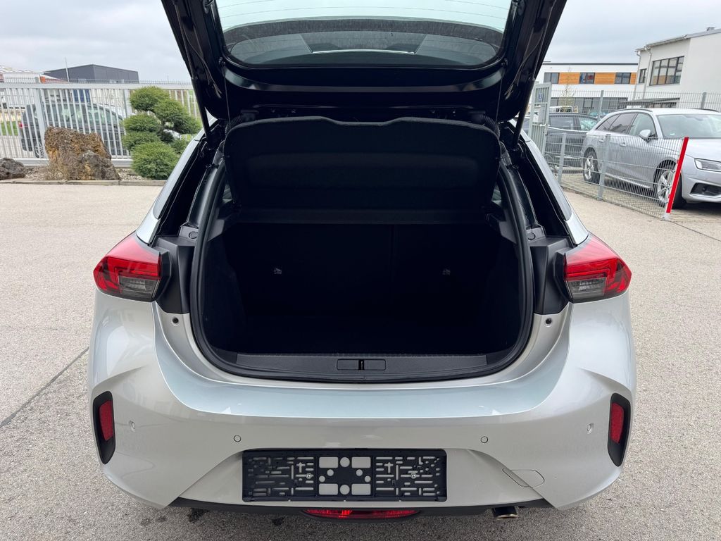 6 Lautsprecher, Airbag Fahrer-/Beifahrerseite, Audiosystem Multimedia, Außenspiegel elektr. verstell- und heizbar, elektr. anklappbar, B-Säulen schwarz Hochglanz (außen), Bordcomputer, Bremsassistent, Dach Kontrast-Lackierung, Dachhimmel schwarz, Einparkhilfe vorn und hinten mit Parksensoren seitlich, Elektron. Stabilitäts-Programm Plus (ESP), Fahrassistenz-System: Berganfahr-Assistent (HSA, Hill Start Assist), Fahrassistenz-System: Müdigkeitserkennungs-Sensor, Fahrassistenz-System: Spurhalteassistent, Fahrassistenz-System: Totwinkel-Assistent, Fahrassistenz-System: Verkehrszeichenerkennung, Farbdisplay (7 Zoll), Fensterheber elektrisch vorn + hinten, Fensterheber vorn elektr. mit Einklemmschutz, Feststellbremse elektrisch, Gepäckraumbeleuchtung (LED), Geschwindigkeits-Regelanlage (Tempomat) inkl. Geschwindigkeits-Begrenzeranlage, Getriebe Automatik - mit Start-/Stop (8-Stufen), Heckleuchten LED, Heckscheibenwischer, Innenausstattung: Dekorleisten Rot, Isofix-Aufnahmen für Kindersitz an Beifahrersitz, Isofix-Aufnahmen für Kindersitz an Rücksitz, Karosserie: 5-türig, Kopf-Airbag-System, Kraftstofftank 44 Ltr., Lenkrad (Leder, vegan) mit Multifunktion, Lenksäule (Lenkrad) verstellbar, Leseleuchten vorn (2), LM-Felgen, Mittelarmlehne vorn mit Ablagefach, Modellpflege, Motor 1,2 Ltr. - 74 kW, Nebelschlussleuchte, Opel Connect, Otto-Partikelfilter (OPF), Parkpilotsystem vorn und hinten, Pedale Aluminium, Reifen-Reparaturkit, Rückfahrkamera mit 130° Umgebungsansicht, Rücksitzbank geteilt/klappbar (60:40), Schadstoffarm nach Abgasnorm Euro 6e, Scheinwerfer LED, Seitenairbag vorn, Sicht-Paket, Sitzbezug / Polsterung: Stoff, Sportsitze vorn, Stoßfänger Sport-Design, Stoßfänger Wagenfarbe, Türgriffe außen Wagenfarbe, Türgriffe innen verchromt, Warnanlage für Sicherheitsgurt, Beifahrerseite, Warnanlage für Sicherheitsgurt, Fahrerseite, Warnanlage für Sicherheitsgurte hinten