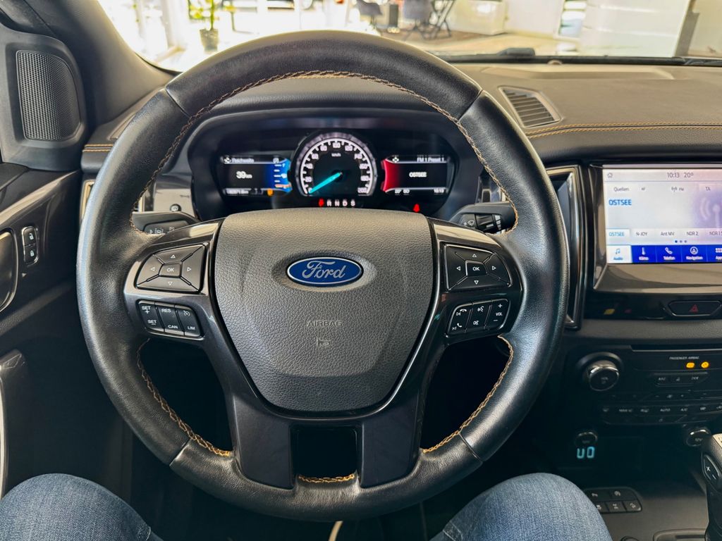 3. Bremsleuchte, Airbag Beifahrerseite abschaltbar, Anhänger-Stabilisierungs-Programm (TSA), Audio-Paket 129, Außenspiegel elektr. anklappbar, Außenspiegel elektr. verstell- und heizbar, Außentemperaturanzeige, Batterie verstärkt, Blinkleuchte in Außenspiegel integriert, Bluetooth-Schnittstelle, Bodenleuchte im Außenspiegel, Bordcomputer, Brillenfach in Dachhimmel / Dachkonsole integriert, Dachkonsole mit Leseleuchten, Dachreling (Aluminium), Fahrassistenz-System: Notbrems-Assistent, Fahrzeugschlüssel (2) beide klappbar, Fensterheber elektrisch hinten, Fußmatten Premium, Getriebe Automatik - Typ: 10R80 (10-Stufen), Gurtstraffer, Heckscheibe heizbar, Innenspiegel mit Abblendautomatik, Intelligent Protection System (IPS), Isofix-Aufnahmen für Kindersitz, Karosserie/Aufbau: Pritsche, Doppelkabine, Kindersicherung elektrisch, Knieairbag Fahrerseite, Kühlergrill im Sport-Design, Laderaum-Paket 8, Laderaumwanne, Lendenwirbelstütze Sitz vorn links, Lenksäule (Lenkrad) höhenverstellbar, Mittelkonsole Premium, Modellpflege (2), Motor 2,0 Ltr. - 156 kW TDCi Panther KAT, Off-Road-Paket, Parkpilotsystem vorn, Rad-Paket 20, Radstand 3220 mm, Reifendruck-Kontrollsystem, Rücksitz-Paket 11, Schadstoffarm nach Abgasnorm Euro 6d-TEMP, Schalt-/Wählhebelgriff Leder, Scheinwerfer LED, Schmutzfänger hinten, Schmutzfänger vorn, Seitenschweller mit Trittbrett, Sitz vorn links elektr. verstellbar (8-fach), Sitzbezug / Polsterung: Leder, Sonnenblende links mit Spiegel (beleuchtet), Sonnenblende rechts mit Spiegel (beleuchtet), Start/Stop-Anlage, Steckdose (12V-Anschluß) im Koffer-/Laderaum, Steckdose 230V, Stoßfänger hinten schwarz (Stahl), Stoßfänger Sport-Ausführung, Stoßfänger Wagenfarbe, Verglasung getönt, Vorbereitungs-Paket Tachograph, Wildtrak-Paket, Innenspiegel automatisch abblendend