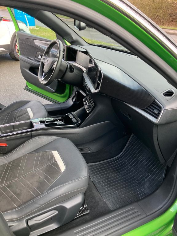 6 Lautsprecher, Akustischer Fußgängerschutz (Außensound), Bluetooth Audio-Streaming, DAB-Tuner (Radioempfang digital), Dach Diamant-Schwarz, Dachhimmel schwarz, Dachspoiler, Elektrofahrzeug, Elektromotor 100 kW (cont. 57 kW), Elektron. Stabilitäts-Programm Plus (ESP), Fahrassistenz-Paket: Active Drive Assist, Fahrassistenz-Paket: Active Drive Assist plus, Fahrassistenz-System: Müdigkeitserkennungs-Sensor, Fahrassistenz-System: Verkehrszeichenerkennung, Fahrzeugschlüssel (2) beide klappbar, Feststellbremse elektrisch, Freisprecheinrichtung (Bluetooth) mit Sprachsteuerung, Gepäck-/Laderaumboden doppelt, Innenausstattung: Leder Alcantara, Karosserie: 5-türig, Klimaautomatik, Kopf-Airbag-System, Kühlergrill, Opel Vizor, Rahmen in Chrom, Ladekabel mit Schukostecker (Mode 2), Ladevorrichtung On-Board-Lader (11 kW), Lenkrad heizbar, LM-Felgen, MP3-Schnittstelle für Mobiltelefon/Handy, Nebelscheinwerfer LED, Radstand 2561 mm, Reifen-Reparaturkit, Seitenairbag vorn, Sicht-Paket, Sitzheizung vorn, Voll-LED (IntelliLux), Wärmepumpe zur Reichweitenoptimierung, Wärmeschutzverglasung, Wärmeschutzverglasung hinten abgedunkelt (Solar-Protect)