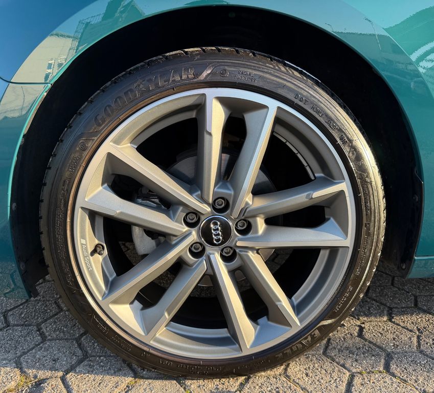 Sonderausstattung:Ablage-Paket, Audi connect (Remote / Control), Audi Smartphone Interface, Außenspiegel elektr. verstell-, heiz- und anklappbar, Einparkhilfe vorn und hinten, akustisch und optisch mit selektiver Anzeige (APS Plus), Gepäckraum-Paket, Innenausstattung: Aluminium-Optik, Innenspiegel mit Abblendautomatik, Interieur-Paket S line, Komfort-Klimaautomatik 2-Zonen, Lenkrad (Sport/Leder - 3-Speichen, unten abgeflacht) mit Multifunktion plus, LM-Felgen 7,5x18 (5-Doppelarm, Titanoptik Matt, glanzgedreht, Audi exclusive), Multi-Media-Interface MMI Basic Plus / MMI Radio Plus, Radioempfang digital (DAB), Sitz vorn rechts höhenverstellbar, Sitzheizung vorn, Sound-System DSP / Audi Sound-System, Stahlfelgen 5,5x15 (für Winterbereifung), Uni-Lackierung, Verglasung hinten abgedunkelt (Privacyverglasung), Wagenheber