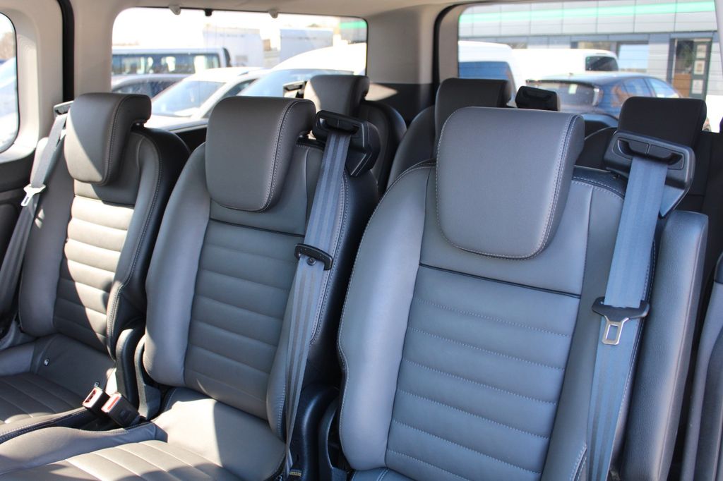 2. Batterie, Airbag Beifahrerseite, Airbag Fahrerseite, Anhänger-Stabilisierungs-Programm (TSA), Außenspiegel elektr. anklappbar, Außenspiegel elektr. verstell- und heizbar, Blinkleuchte in Außenspiegel integriert, Bodenbelag: Teppich im Lade-/Fahrgastraum, Bordcomputer, Dachverkleidung Himmel im Fahrgastraum, Einstiegsleuchten, Elektr. Bremskraftverteilung (EBD), Elektron. Traktionskontrolle, Fahrassistenz-System: Berganfahr-Assistent, Fahrassistenz-System: Notbrems-Assistent, Fahrassistenz-System: Notrufsystem, Fahrassistenz-System: Seitenwind-Assistent, Fenster im Lade-/FG-Raum: - ausstellbar, hinten links/rechts, Fenster im Lade-/FG-Raum: - feststehend, 3.Reihe links, Fenster im Lade-/FG-Raum: - feststehend, 3.Reihe rechts, Getriebe Automatik SelectShift - (6-Stufen), Haltegriff B-Säule, Haltegriffe vorn, Handschuhfach abschließbar, Heckklappe mit Verglasung, Karosserie/Aufbau: Kombi Standard, Karosserievariante: Normaldach, Klimaanlage im Lade-/Fahrgastraum, Kopf-Schulter-Airbag vorn, Kotflügelverbreiterung, Kühlergrill mit Chromleiste, Lenksäule (Lenkrad) höhen-/längsverstellbar, LM-Felgen, Modellpflege, Motor 2,0 Ltr. - 136 kW TDCi KAT, Parkpilotsystem vorn und hinten, Radiovorbereitung, 10 Lautsprecher, Radstand 3300 mm, Reifen 215/60 R17C, Reifendruck-Kontrollsystem, Reserverad in Fahrbereifung, Rücksitz-Paket 8 (3 Einzelsitze 2.Reihe, abnehmbar / 3 Einzelsitze 3.Reihe, abnehmbar), Schadstoffarm nach Abgasnorm Euro 6d-TEMP, Scheibenwischer mit Intervallschaltung, regulierbar, Schiebetür Lade-/Fahrgastraum links, Schiebetür Lade-/Fahrgastraum rechts, Schmutzfänger vorn und hinten, Seitenairbag, Seitenschutzleisten in Wagenfarbe, Sonnenblende links mit Spiegel (beleuchtet), Sonnenblende rechts mit Spiegel (beleuchtet), Sonnenschutzrollo an Seitenscheiben Fahrgastraum, Start/Stop-Anlage, Steckdose 12V im Lade-/Fahrgastraum, Style-Farb-Paket, Tagfahrlicht LED, Titanium, Touchscreen-Farbdisplay (8 Zoll), Trittstufe unter Schiebetür links, Trittstufe unter Schiebetür rechts, USB-Schnittstelle, Verglasung hinten abgedunkelt (Privacy Glass), Verglasung stark getönt, Verzurrösen (4), Wärmeschutzverglasung Lade-/Fahrgastraum, mittlerer Tönungsgrad, Zusatzheizung elektrisch