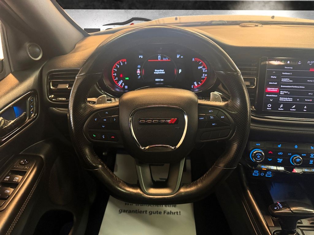 Dieser Dodge Durango GT SUV aus 2022 überzeugt durch seine umfassende Ausstattung und den ausgezeichneten Zustand mit nur einem Vorbesitzer. Der kraftvolle 3.6-Liter V6-Motor mit 296 PS sorgt in Verbindung mit dem Allradantrieb für souveräne Fahrleistungen unter allen Bedingungen. Das Automatikgetriebe und die zahlreichen Fahrassistenzsysteme wie Berganfahrhilfe, Totwinkelassistent und Notbremsassistent bieten höchsten Fahrkomfort. Der Innenraum besticht durch schwarze Lederausstattung, 6 Sitzplätze, elektrisch verstellbare Sitze mit Memoryfunktion und eine 3-Zonen-Klimaautomatik. Die umfangreiche Technologieausstattung umfasst ein Navigationssystem mit Touchscreen und Apple CarPlay.- Scheckheft (elektronisch/digital)