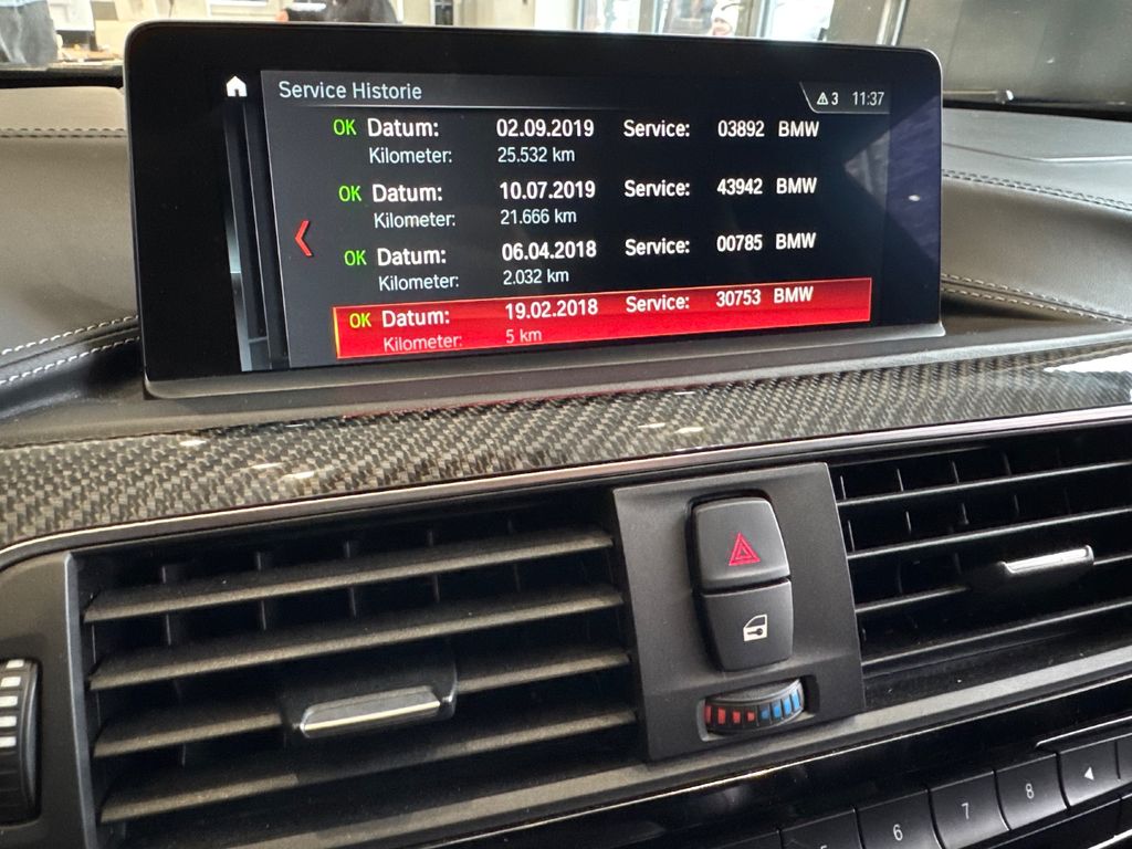 Aerodynamik-Paket M-Technic, Airbag Beifahrerseite abschaltbar, Airbag Fahrer-/Beifahrerseite, Audiosystem BMW Professional (Radio/CD-Player MP3-fähig), Auspuffanlage (2-Rohr-Anlage, links/rechts) mit Chromblenden, AUX-IN-Anschluss (AUX-IN), Außenspiegel elektr. verstell- und heizbar, Außenspiegel Wagenfarbe, Blinkleuchten Weiß, Bordcomputer, Bremsanlage: Compound - Hochleistungs-Bremssystem (Bremssättel Blau), Bremsassistent, Check-Control-System, Dach Carbon, Dachhimmel Anthrazit (BMW Individual), Diebstahlsicherung für Räder (Felgenschlösser), Drehzahlmesser, Durchladeeinrichtung (Mittelarmlehne hinten), Dynamische Bremsleuchte, Dynamische Tractions Control (DTC), Fahrassistenz-System: Fahrerlebnisschalter, Farbmonitor (6,5 Zoll), Fensterheber elektrisch vorn + hinten, Fernentriegelung Heckklappe, Fußmatten Velours, Getränkehalter, Heckklappenbetätigung automatisch, Heckleuchten LED, Instrumentenkombination (erweiterter Umfang), Isofix-Aufnahmen für Kindersitz an Rücksitz, Karosserie: 4-türig, Klimaautomatik 2-Zonen mit autom. Umluft-Control, Kopf-Airbag-System hinten, Kopf-Airbag-System vorn, Kopfstützen hinten klappbar, Leichtbaudach (kohlefaserverstärkter Kunststoff, CFK), Lenksäule (Lenkrad) mechan. verstellbar, Licht-Paket, LM-Felgen, Luftauslass (Air Breather) schwarz hochglänzend, M Drive (Fahrprofilauswahl), Modellpflege, Motor 3,0 Ltr. - 317 kW 24V, Multifunktion für Lenkrad, Navigations-Paket ConnectedDrive, Nichtraucher-Paket, Park-Distance-Control (PDC) vorn und hinten, Personalisierungssystem (Personal Profile), Reifendruck-Kontrollsystem, Reifenpannen-Anzeige, Rücksitzlehne geteilt/klappbar, Schadstoffarm nach Abgasnorm Euro 6, Schaltpunktanzeige, Scheibenwaschdüsen heizbar, Seitenairbag hinten, Seitenairbag vorn, Service-System: Gesetzlicher Notruf, Service-System: Intelligenter Notruf inkl. TeleServices, Servolenkung Servotronic M-Technic, Sitzausstattung: 4-Sitzer, Sitzbezug / Polsterung: Stoff/Leder-Kombination Carbon-Design, Sitze vorn elektr. verstellbar (links mit Memory), Spiegel-Paket, Sportsitze vorn (M-Technic), Start-Stop-Knopf, Start/Stop-Anlage (Funktion), Warndreieck, Head-up-Display, Sitzheizung vorn