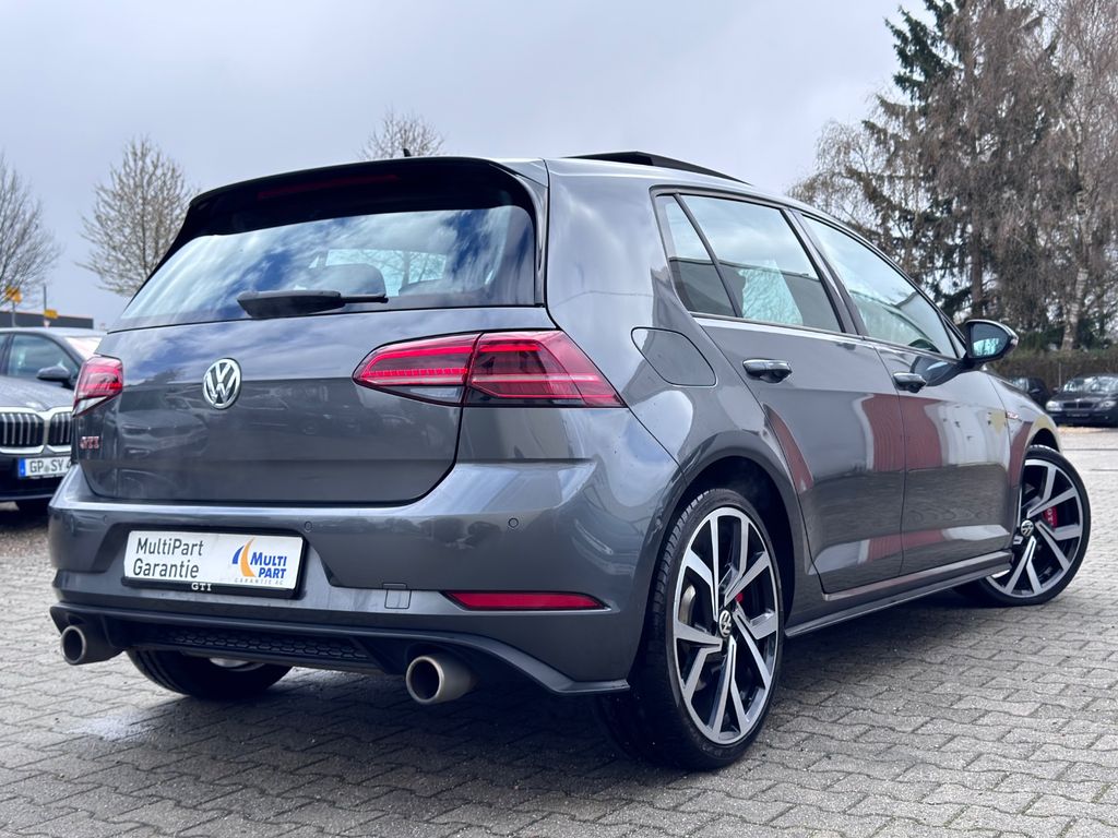 3-Punkt-Sicherheitsgurt hinten mitte, Abbiegelicht, Active Info-Display (Instrumentenanzeige digital), Airbag Beifahrerseite abschaltbar, Airbag Fahrer-/Beifahrerseite, Ambiente-Beleuchtung, Antriebs-Schlupfregelung (ASR), Audiosystem Composition Media (Touchscreen, Radio/CD-Player, MP3, Bluetooth), Ausstattung GTI, Auto-Hold-Funktion, Automatische Fahrlichtschaltung (ALS) mit Leaving Home / Coming-Home-Lichtfunktion, Außenspiegel asphärisch, links, Außenspiegel elektr. verstell- und heizbar, Außenspiegel konvex, rechts, Außenspiegel lackiert, Außenspiegel mit autom. Absenkfunktion, rechts, Blinkleuchte in Außenspiegel integriert, Bremsassistent, Bremssättel Rot lackiert, Chrom-Paket 2, Dachhimmel Stoff, schwarz, Dachspoiler, Differentialsperre (Vorderachse), Doppeltonhorn, Durchladeeinrichtung (Mittelarmlehne hinten), Einparkhilfe vorn und hinten, Einstiegsleisten vorn beleuchtet, Elektron. Differentialsperre (EDS), Elektron. Differentialsperre (XDS), Fahrassistenz-System: Anhänger-Stabilisierungs-Programm, Fahrassistenz-System: Müdigkeitserkennung, Fahrassistenz-System: Umfeldbeobachtungssystem (Front assist) mit City-Notbremsfunktion, Frontscheibe Verbundglas getönt, Funkschlüssel (2) klappbar, Fußmatten Textil, Handschuhfach mit Kühlfunktion, Heckleuchten LED, dunkelrot, Blinkleuchten dynamisch, Heckscheibenwischer, Innenausstattung: Dekoreinlagen Honeycomb Black, Innenspiegel mit Abblendautomatik, Isofix-Aufnahmen für Kindersitz an Rücksitz, Karosserie: 5-türig, Klimaanlage Climatronic 2-Zonen, Knieairbag Fahrerseite, Kopf-Airbag-System vorn und hinten inkl. Seitenairbag vorn, Kopfstützen hinten (3-fach), Lautsprecher (8), Lendenwirbelstütze Sitz vorn rechts, Lenkrad (Sport/Leder) mit Multifunktion und Schaltfunktion, Lenksäule (Lenkrad) mechan. verstellbar, Höhen-/Längsverstellung, Leseleuchten vorn und hinten LED, Modellpflege, Motor 2,0 Ltr. - 180 kW TSI, Multifunktionsanzeige Premium (Farbdisplay), Nebelschlussleuchte, Nichtraucher-Paket, Notrufsystem, Otto-Partikelfilter (OPF), Parkbremse elektrisch, Pedale Edelstahl, Progressivlenkung, Reifen-Reparaturkit (Tire Mobility Set), Reifenkontroll-Anzeige, Rücksitzlehne geteilt, Schadstoffarm nach Abgasnorm Euro 6d-TEMP, Schalt-/Wählhebelgriff Aluminium, Scheinwerfer LED, Sicherheitsgurte vorn mit Gurtstraffer, höhenverstellbar, Sitz vorn links höhenverstellbar, Sitz vorn rechts höhenverstellbar, Sitze: Top-Sportsitze vorn, Stabilisator vorn, Start/Stop-Anlage, Steckdose 12V im Koffer-/Laderaum, Stoßfänger Sport-Design, lackiert, Türgriffe außen Wagenfarbe, Warnanlage für Sicherheitsgurte vorn, Wärmeschutzverglasung grün getönt