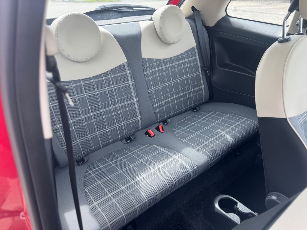 Airbag Fahrer-/Beifahrerseite, Autom. Begleitfunktion der Beleuchtung (Follow me home), Automatische Türverriegelung, Außenspiegel elektr. verstell- und heizbar, beide, Beifahrerairbag abschaltbar, Bordcomputer, Chrom-Paket, Elektr. Bremskraftverteilung, Fahrassistenz-System: Bremsassistent, Geschwindigkeits-Begrenzeranlage, Heckscheibe heizbar, Infotainment-System: UConnect (Touchscreen 5"), Innenausstattung: Dekoreinlagen Armaturenbrett, lackiert, Isofix-Aufnahmen für Kindersitz an Rücksitz, Karosserie: 3-türig, Knieairbag Fahrerseite, Kopf-Airbag-System vorn und hinten, Kopfstützen hinten, Kühlergrill verchromt, Lenksäule (Lenkrad) höhenverstellbar, LM-Felgen, Modellpflege, Motor 1,2 Ltr. - 51 kW KAT, Panoramadach (Glas), Positions-Memory für Beifahrersitz, Reifen-Reparaturkit, Reifendruck-Kontrollsystem, Rücksitz geteilt / klappbar, Schadstoffarm nach Abgasnorm Euro 6, Seitenairbag vorn, Steckdose (12V-Anschluß) im Armaturenbrett, Steckdose (12V-Anschluß) vorn, Stoßfänger Wagenfarbe, Tankdeckel abschließbar, Türgriffe außen verchromt, Wärmeschutzverglasung
