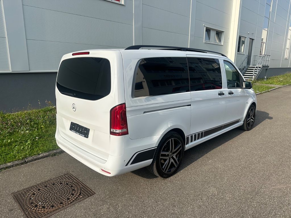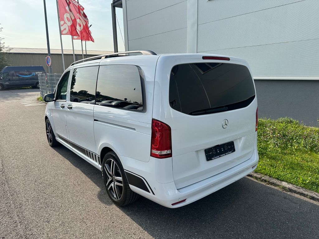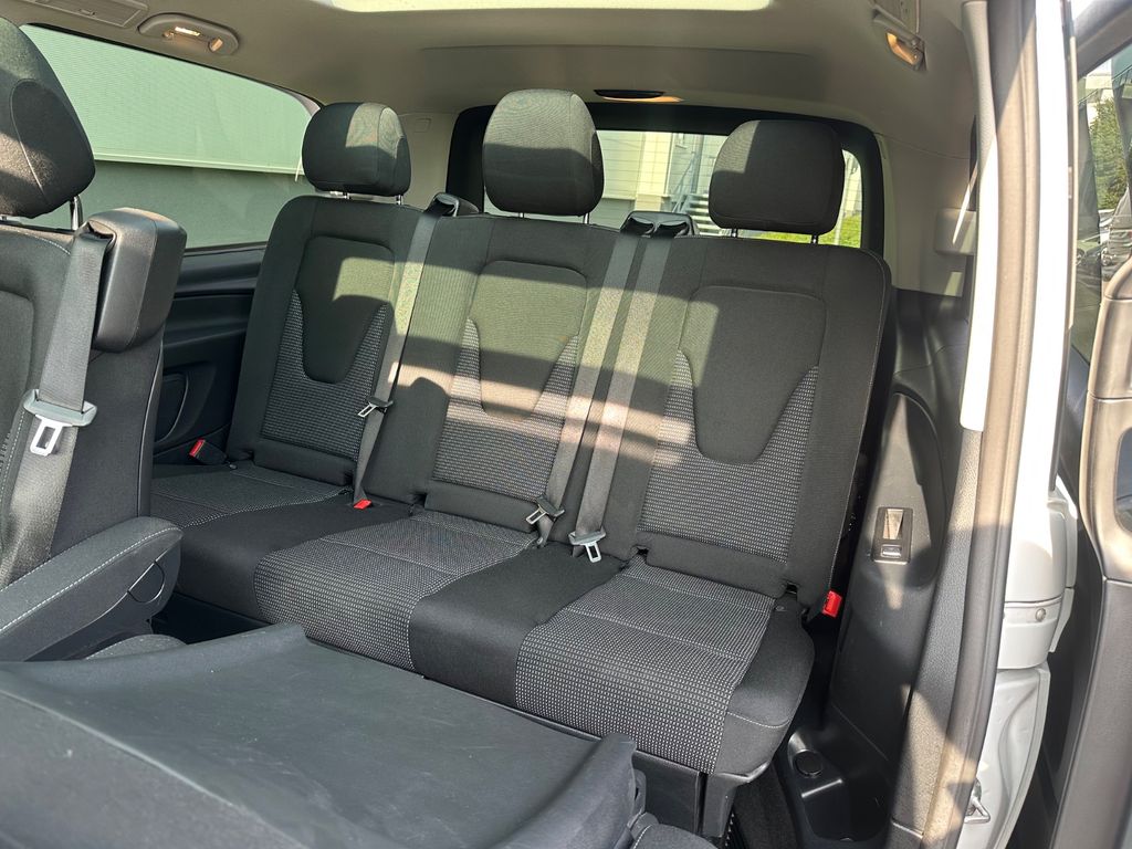3. Bremsleuchte, Adaptives Bremslicht, Airbag Beifahrerseite, Airbag Fahrerseite, Anfahrhilfe (Berganfahr-Assistent), Anzeige für Waschwasserstand, Armlehnen Fahrgastraum, Außenspiegel asphärisch, beide, Außenspiegel elektr. verstell- und heizbar, beide, Außentemperaturanzeige, Befestigungsschienen für Dachträger, Beleuchtung im Haltegriff Fond mit Lesespot, BlueEfficiency-Paket, Bodenbelag: Teppich im Fahrerraum, Bremssystem mit ABS+ASR, Chrom-Paket, Dachverkleidung, Design- und Ausstattungslinie Select, Einschaltautomatik für Fahrlicht, Einstiegsgriff hinten, Einstiegsleuchten, Fahrassistenz-System: Anfahr-Assistent (Berganfahr-Assistent), Fahrassistenz-System: Attention-Assist (Müdigkeitserkennungs-Sensor), Fahrassistenz-System: Pannenmanagement, Fahrassistenz-System: Seitenwind-Assistent, Fenster für hintere Türen / Heckklappe mit Wisch-/Waschanlage, Fenster im Lade-/FG-Raum: - feststehend, vorn links, Fenster im Lade-/FG-Raum: - feststehend, vorn rechts, Frontscheibe mit Scheibenantenne, Fußraumbeleuchtung vorn, Geschwindigkeits-Begrenzeranlage 210 km/h, Getriebe Automatik GTronic - (9-Stufen), Getränkehalter vorn, Gurtstraffer, Haltegriffe A-Säulen, Haltegriffe im Fond, Handschuhfach abschließbar, Harnstofftank (AdBlue): 24 Ltr., Heckklappe mit Verglasung, Heckscheibe heizbar, Heckscheibenwischer, Innen- und Umfeldbeleuchtung, Innenraumfilter: Pollenfilter, Innenverkleidung gehobene Ausführung, Karosserie/Aufbau: Kombi (Standard), Karosserie/Aufbau: lang, Kindersicherung, Kombiinstrument mit Pixel-Matrix-Display, Komfort-Fahrwerk, Komfortbeleuchtung im Fahrgast-/Laderaum, Kommunikationsmodul (LTE) für digitale Dienste, Kopf-Airbag-System (Windowbag), Kopf-Schulter-Airbag (Thoraxbag) Fahrer-/Beifahrerseite, Lenkrad (Lenksäule mech. verstellbar), Lenkrad mit Multifunktion inkl. Reiserechner, Mercedes-Benz Notrufsystem, Modellpflege, Motor 2,0 Ltr. - 174 kW CDI KAT, Nebelschlussleuchte, PKW-Zulassung, PTC Heater, Radstand 3200 mm, Reifendruck-Kontrollsystem, Rückspiegel innen, Schadstoffarm nach Abgasnorm Euro 6d, Scheibenwischer mit Regensensor, Schiebetür Lade-/Fahrgastraum rechts mit Verglasung, SCR-System (AdBlue-Technologie), Select, Sicherheitsgurt-System mit Warnanlage (Fahrer-/Beifahrerseite), Sitzbezug / Polsterung: Stoff Caluma, Sonnenblenden mit Spiegel (beleuchtet), Stoßfänger / Stoßf.-Leiste seitlich + Griff an Heckklappe lackiert, Umfeldleuchte in Heckklappe, Vlies-Batterie 92 Ah, Vorbereitung für DAB Radioempfang, Warmluftkanal zum Lade-/Fahrgastraum, Wartungsintervall-Anzeige Assyst, Wärmeschutzverglasung
