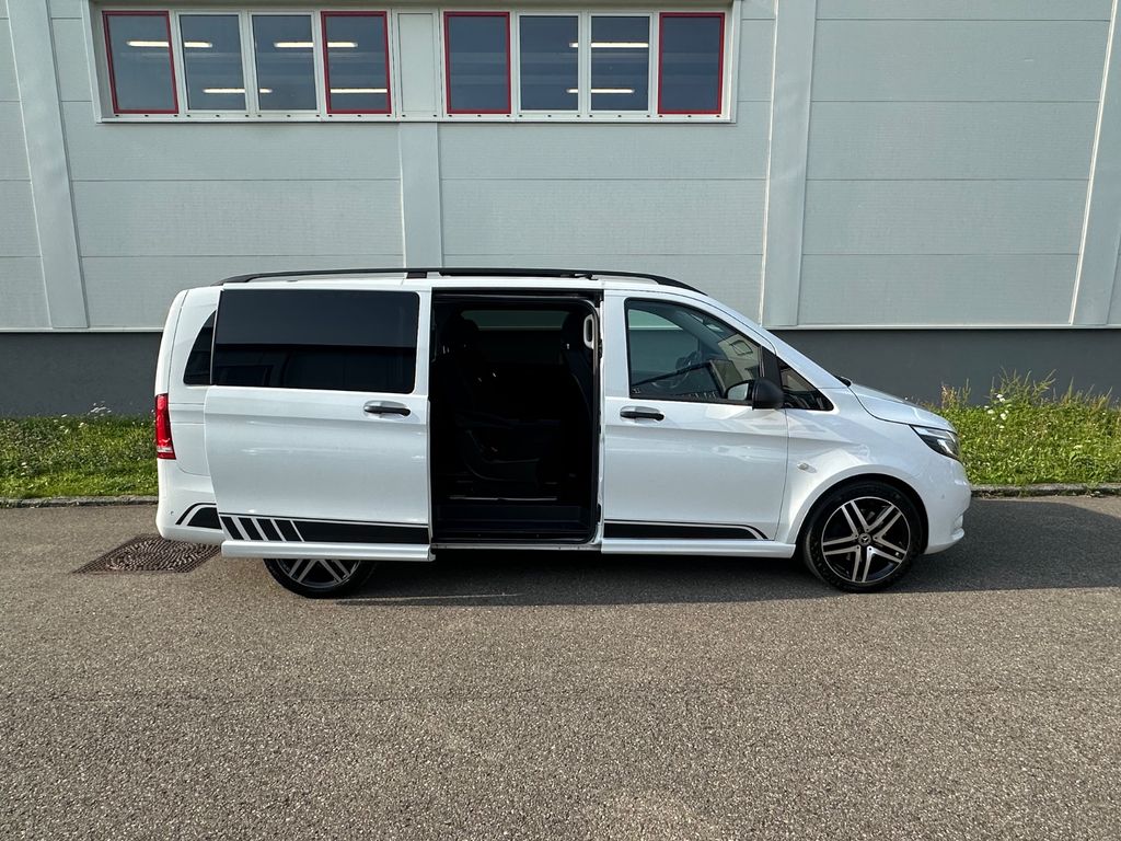 Sonderausstattung:3-Tasten-Fernbedienung für Zentralverriegelung, Anhängelast 2500 kg, Audio-Navigationssystem Audio 40 (DAB+, Bluetooth, USB), Bodenbelag: Fahrgastraum TPO, DAB-Tuner (Radioempfang digital), Dachreling, Einstiegsbeleuchtung mit Logo Projektionsfunktion, Fahrassistenz-System: aktiver Bremsassistent, Fahrassistenz-System: Fernlichtassistent Plus, Fenster im Lade-/FG-Raum: - elektr. ausstellbar, hinten links/rechts, Generator 250 A, Gepäcksicherungsnetz, Getränkehalter vorn (doppelt), Intelligent Light System LED, Klimaautomatik Fond (Tempmatik), Komfort-Klimaautomatik Thermotronik, Kraftstofftank: vergrößert, Liege-Paket, LM-Felgen 8x19 (5-Doppelspeichen), Metallic-Lackierung, Mittelkonsole mit Staufach, Panorama-Schiebedach vorn elektrisch, mit Panoramadach hinten, Park-Paket, Raucher-Paket, Scheibenwaschanlage beheizt, Schiebetür links elektrisch, Schiebetür rechts elektrisch, Sitzausstattung: Schnellverriegelung für Sitzschienen-System, Sitze im Fahrerhaus: Beifahrersitz heizbar, Sitze im Fahrerhaus: Beifahrersitz Komfort, drehbar, 2 Armlehnen, Sitze im Fahrerhaus: Fahrersitz heizbar, Sitze im Fahrerhaus: Fahrersitz Komfort, drehbar, 2 Armlehnen, Sitze im Lade-/FG-Raum: 1.Reihe, 1 Einzelsitz links, Sitze im Lade-/FG-Raum: 1.Reihe, 1 Einzelsitz rechts, Spiegel-Paket, Sport-Paket Exterieur, Steckdosen (12V-Anschluß) im Lade-/Fahrgastraum, 2-fach, Tisch-Paket, Zweiwege Lautsprecher vorn und hinten