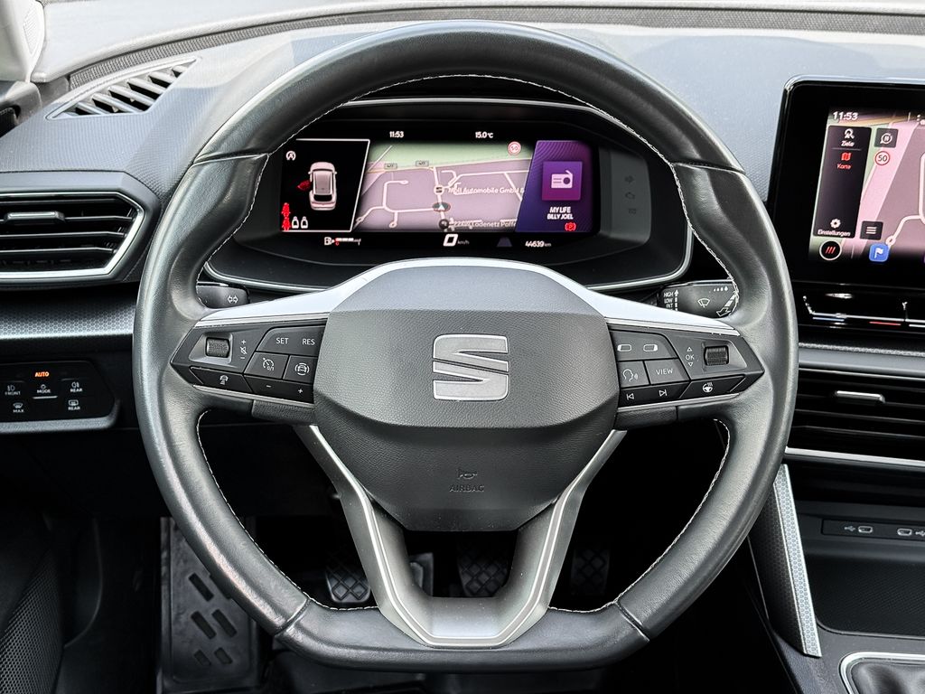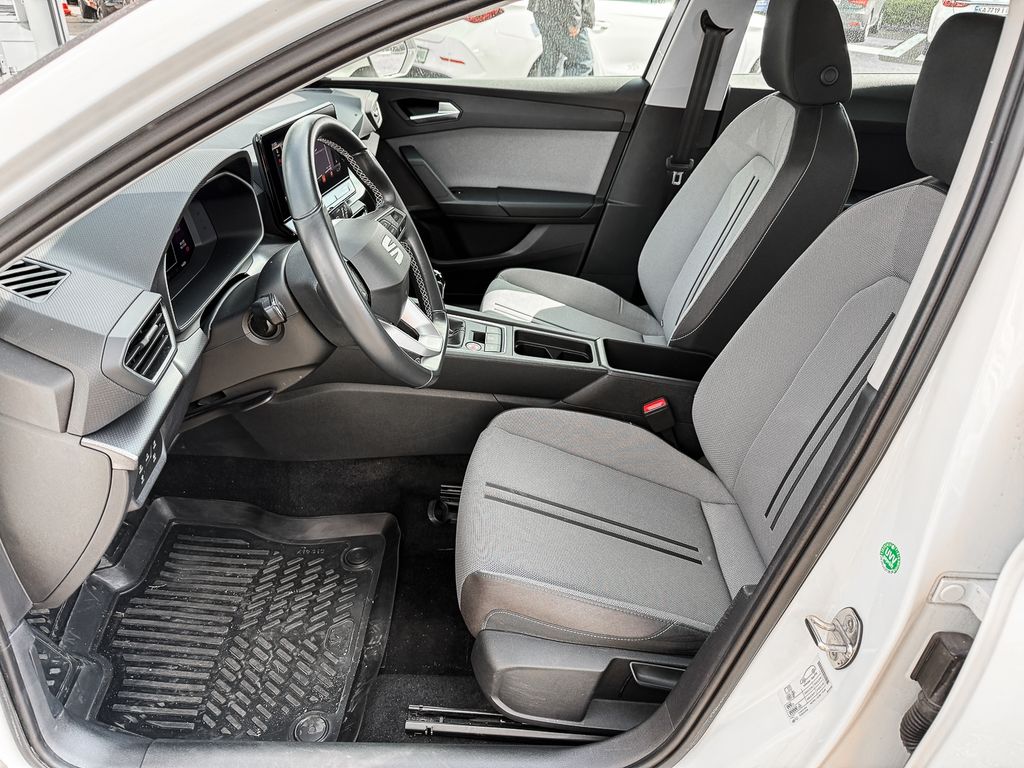 - Weiteres: Antriebs-Schlupfregelung (ASR), BORDCOMPUTER, Sitzbezug / Polsterung: Stoff, Dachreling, Reifen-Reparaturset, Rücksitzlehne geteilt/klappbar (1/3-2/3), Elektron. Querdifferentialsperre (XDS), Airbag Beifahrerseite abschaltbar, Notrufsystem, Geschwindigkeits-Regelanlage (Tempomat) inkl. Geschw.-Begrenzer, Getriebe 6-Gang, Fensterheber elektrisch vorn + hinten mit Komfortschaltung, Mobile Online Dienste Seat Connect, Nebelscheinwerfer LED mit Abbiegelicht, Zentralverriegelung / Startanlage Keyless Go (Start-Stop-Knopf), Schadstoffarm nach Abgasnorm Euro 6d, Seitenairbag vorn mitte (Central Airbag), LM-Felgen, Heckleuchten Voll-LED mit Lichtband (Infinite Light), Kombiinstrument digital (virtual cockpit), Sonderlackierung Weiß, Außenspiegel elektr. verstell-, heiz- und anklappbar mit Spiegelabsenkung, Audio-Navigationssystem mit Touchscreen Farbbildschirm, Anti-Blockier-System (ABS), Tagfahrlicht LED, Kopf-Airbag-System, Reifenkontroll-Anzeige, Seitenairbag, Wegfahrsperre (elektronisch), Airbag Fahrer-/Beifahrerseite, Gepäckraumabdeckung / Rollo, Licht- und Regensensor, 12V-Steckdose im Laderaum, Außenspiegel Wagenfarbe, Blinkleuchten LED in Außenspiegel integriert, Bluetooth-Schnittstelle mit Freisprecheinrichtung, Durchladeeinrichtung, Elektron. Stabilitätskontrolle (ESC), Fahrassistenz-Paket M, Fernlichtassistent, Handschuhfach beleuchtet, Innenraumlicht-Paket LED, Innenspiegel mit Abblendautomatik, Isofix-Aufnahmen für Kindersitz, Klimaautomatik, Laderaumboden variabel, Lendenwirbelstütze, Lenkrad heizbar, Licht- und Sicht-Paket, Lichtassistent (Coming Home, Leaving Home), Motor 1,5 Ltr. - 110 kW 16V TSI ACT, Müdigkeitserkennung, Parklenkassistent mit Einparkhilfe vorn und hinten, Radioempfang digital (DAB+), Scheinwerfer LED, Servotronic, Sitzheizung vorn, Sitzhöhenverstellung Fahrersitz, Sport/Lederlenkrad, Spurhalteassistent, Start/Stop-Anlage, Umfeldbeobachtungssystem (Front assist) mit City-Notbremsfunktion, USB-Schnittstelle vorn (2-fach, Typ C), Verkehrszeichenerkennung, Wärmeschutzverglasung, Winter-Paket
