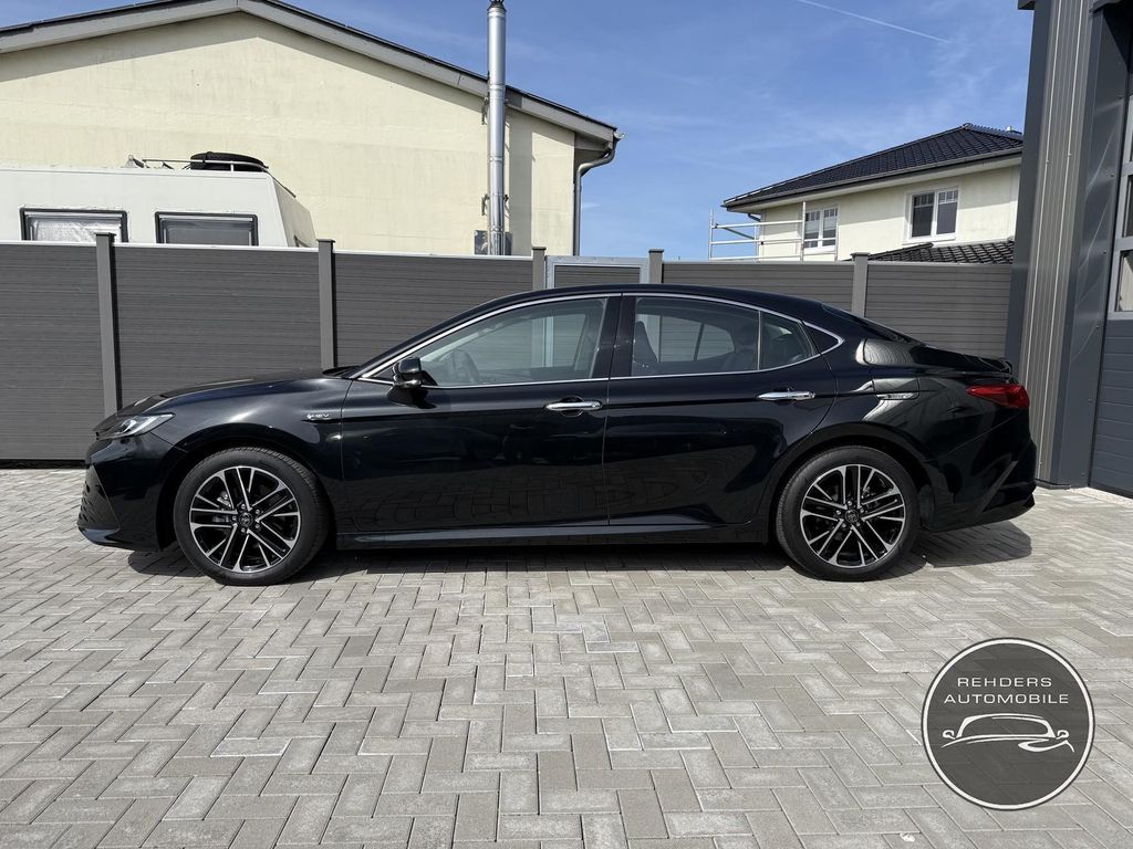 Erleben Sie deutschen Luxus mit diesem gepflegten Toyota Camry. Diese Limousine bietet ein umfassendes Paket an Komfort und Technologie. Der 186 PS starke Benzinmotor mit Frontantrieb und Automatikgetriebe sorgt für eine angenehme Fahrdynamik. Das schwarze Exterieur harmoniert perfekt mit dem hochwertigen schwarzen Lederinterieur. Die 2-Zonen-Klimaautomatik, elektrisch verstellbare Sitze mit Memory-Funktion und Lendenwirbelstütze sowie belüftete und beheizbare Sitze garantieren höchsten Komfort. Technologisch überzeugt der Camry mit digitalem Cockpit, Touchscreen, Navigationssystem, Apple CarPlay und Android Auto. Umfangreiche Sicherheitssysteme wie Spurhalteassistent, Totwinkelwarner, adaptiver Tempomat und Kollisionsvermeidung bieten maximale Sicherheit.
