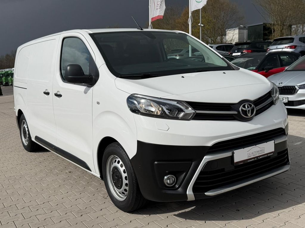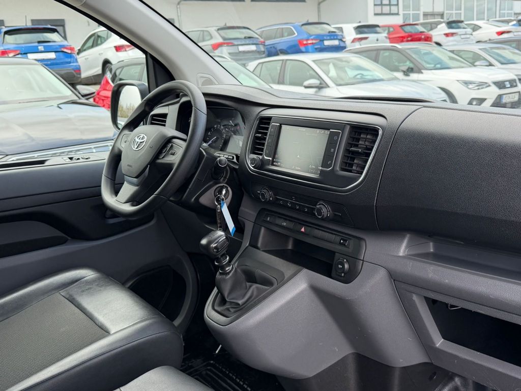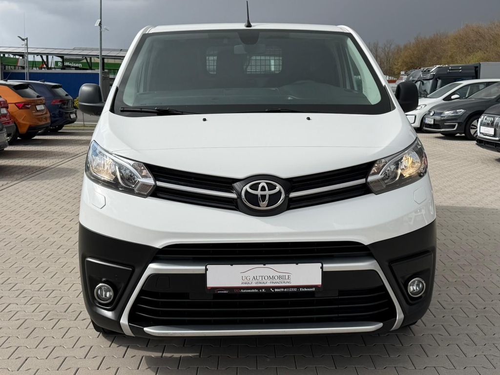 3. Bremsleuchte, Airbag Fahrer-/Beifahrerseite, Antriebs-Schlupfregelung (ASR / TRC), Audio-/Radio-Fernbedienung am Lenkrad, Audiosystem: Multimedia Toyota Pro Touch, Außenspiegel elektr. anklappbar, Beifahrerdoppelsitz, Bordcomputer, Bremsassistent, Chromeinfassung für Nebelscheinwerfer, Comfort-Paket, DAB-Tuner (Radioempfang digital), Einparkhilfe vorn und hinten, Elektr. Bremskraftverteilung, Fahrassistenz-System: Berganfahrkontrolle (HAC), Fahrassistenz-System: Müdigkeitserkennungs-Sensor, Fahrassistenz-System: Totwinkel-Assistent (BLIS), Fahrassistenz-System: Verkehrszeichenerkennung (RSA), Gepäck-/Laderaumleuchte, Handschuhfach mit Kühlfunktion, Heckflügeltüren ohne Verglasung, Innenspiegel abblendbar, Karosserie/Aufbau: Kasten, Komfortsitze, Laderaumtrennwand mit Fenster, Lendenwirbelstütze Sitz vorn links, Lenksäule (Lenkrad) verstellbar, Motor 1,5 Ltr. - 88 kW D-4D, Radstand 3275 mm, Reifendruck-Kontrollsystem, Reserverad in Fahrbereifung, Schadstoffarm nach Abgasnorm Euro 6, Schadstoffarm nach Abgasnorm Euro 6d, Schiebetür Fahrgast-/Laderaum rechts, Schwellerabdeckung / -verkleidung, Seitenschutzleisten schwarz, Sicht-Paket, Sitz vorn links höhenverstellbar, Sitzausstattung: 3-Sitzer, Smartphone-Integration x-connect (Apple CarPlay und Android Auto), Stoßfänger mit Chromeinlage, Toyota Smart Cargo, Verglasung getönt