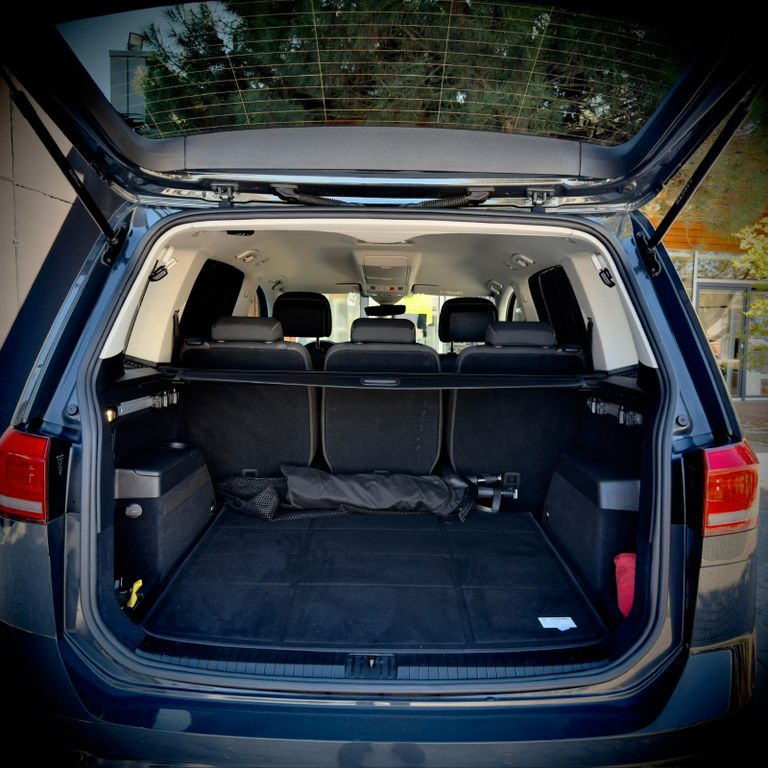 Sonderausstattung:3.Sitzreihe mit Einzelsitzen (2 Sitzplätze), Fahrassistenz-System: Autom. Distanzregelung (ACC) mit Umfeldbeobachtungssystem (Front assist, bis 210 km/h), Family-Paket, Gepäckraum-Abtrennung (Netztrennwand), Reifendruck-Kontrollsystem, Scheinwerfer LED, Sonderlackierung Urano-Grau uni, Spiegel-Paket