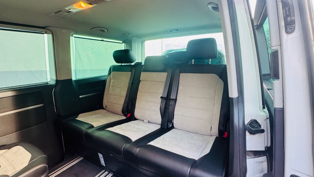 Sonderausstattung:Adaptive Fahrwerksregelung (DCC) mit Dynamik-Fahrwerk, Audio-Navigationssystem Discover Media Plus (Touchscreen-Farbdisplay), Fahrassistenz-System: Autom. Distanzregelung (ACC) und Umfeldbeobachtungssystem (Front Assist, bis 210 km/h), Fahrassistenz-System: Bergabfahr-Assistent, Fahrassistenz-System: Einparkhilfe vorn und hinten mit Rückfahrkamera, Fahrassistenz-System: Fernlichtregulierung (Light Assist), Fenster im Lade-/FG-Raum: - schiebbar vorn, feststehend hinten rechts, Funkschlüssel (4) klappbar, Innenausstattung: Dekoreinlagen Dark Silver brushed (Dekorband in Wagenfarbe), Innenentriegelung Heckklappe / Heckflügeltüren, Kindersicherung im Lade-/Fahrgastraum, Lackierung: 2-Farben-Lackierung Metallic, LM-Felgen 8x18 (Disc, weiß), Mobiltelefon Schnittstelle Comfort und WLAN-Hotspot, Multiflex-Board mit Polsterauflage, Schiebetüren Lade-/Fahrgastraum links/rechts, elektr. betätigt, Schubladen unter Dreiersitzbank, Seitenairbag / Kopfairbag (Curtain-Airbag) vorn und Kopfairbag (Curtain-Airbag) hinten, Sitze im Fahrerhaus: Fahrer- und Beifahrersitz elektr. verstellbar (12-fach, links mit Memory), Sound-System DYNAUDIO (digital), Zusatzheizung (Warmwasser) mit Standheizfunktion und Fernbedienung, Zuziehhilfe für Heckklappe