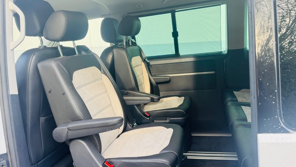 Abdeckung Schiebetürleiste, Airbag Beifahrer abschaltbar, Airbag Fahrer-/Beifahrerseite, Antriebsart: Allradantrieb, Armaturentafel Komfort, Ausstattungs-Paket Licht + Sicht, Außenspiegel asphärisch, links, Außenspiegel elektr. verstell-, heiz- und anklappbar, Außenspiegel konvex, rechts, Außenspiegel und Türgriffe außen in Wagenfarbe, Bodenbelag im Fahrerhaus: Teppich, Bodenbelag: Teppich verstärkt, Chromleisten Stoßfänger vorn, seitlich und Heckklappe unten, Doppeltonfanfare, Dämmglas-Paket, Fahrassistenz-System: Bremsassistent (HBA), Fahrassistenz-System: Multikollisionsbremse (Multi Collision Brake), Fahrassistenz-System: Müdigkeitserkennungs-Sensor, Fahrassistenz-System: Spurwechselassistent (Side Assist / Blind Spot Sensor), Fahrwerk 17", Fenster im Lade-/FG-Raum: - feststehend, vorn und hinten links, Frontscheibe Dämmglas, Fußmatten Fahrerhaus: Velours, Haltegriffe A-Säulen, Handschuhfach abschließbar, Heckklappe mit Verglasung, Heckscheibe heizbar, mit Wischanlage, Innenleuchten im Fahrerhaus: Leseleuchten vorn (2), Innenleuchten im Lade-/FG-Raum: Trittstufenleuchten, Innenraumfilter: Pollenfilter, Karosserie/Aufbau: Bus, Klimaautomatik Climatronic (Fahrerhaus + Lade-/Fahrgastraum), Kraftstofftank: 80 Ltr., Kühlergrill schwarz lackiert, mit Chromleisten, Ladekanten-/ Trittstufenabdeckungen in Edelstahl, Lenksäule (Lenkrad) verstellbar, Motor 2,0 Ltr. - 150 kW TSI, Multifunktionsanzeige Premium (Farbdisplay), Multimedia-Schnittstelle USB (iPhone / iPod) mit AUX-IN, Nichtraucher-Paket, Radstand 3000 mm, Reifen-Reparaturkit, Reifenkontroll-Anzeige, Schadstoffarm nach Abgasnorm Euro 6, Scheinwerfer und Heckleuchten LED, Schiebetür Lade-/Fahrgastraum rechts, Seitenscheiben Dämmglas, Sitzbezug / Polsterung: Alcantara, Sitze im Fahrerhaus: Beifahrersitz Komfort, Sitze im Fahrerhaus: Fahrer- und Beifahrersitz heizbar, Sitze im Fahrerhaus: Fahrer- und Beifahrersitz höhenverstellbar, Sitze im Fahrerhaus: Fahrersitz Komfort, Sitze im Fahrerhaus: Lendenwirbelstützen Fahrer- und Beifahrersitz, Sitze im Lade-/FG-Raum: 1.Reihe, 2 Drehsitze, Sitze im Lade-/FG-Raum: 2.Reihe, 3er-Sitzbank, Sonnenblenden mit Spiegel (beleuchtet), Sonnenschutzrollo im Fahrgastraum, Start/Stop-Anlage Motor, Steckdose (12V-Anschluß) im Fahrerhaus, Stoßfänger in Wagenfarbe, Türablagekasten vorn, Verkleidung im Lade-/FG-Raum: Komfort, Zentralverriegelung mit Fernbedienung und Innenbetätigung, Zul. Gesamtgewicht 3,00 t