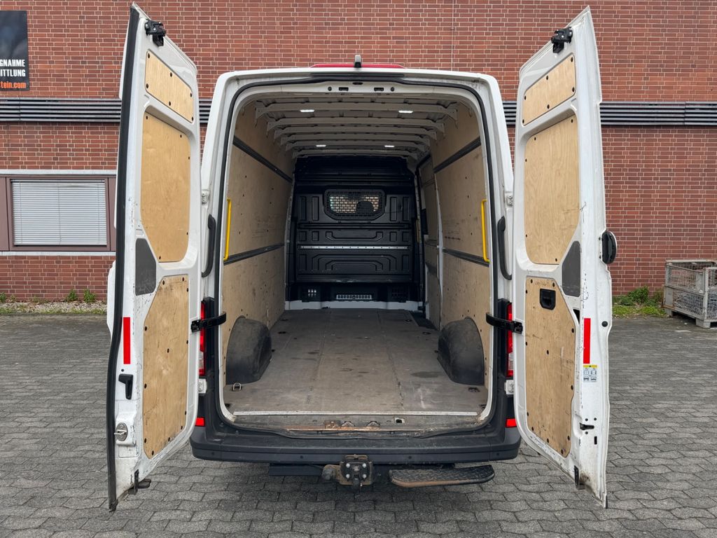 Außenspiegel konvex, links, Außenspiegel konvex, rechts, Blinkleuchten LED in Außenspiegel integriert, Bodenbelag im Fahrerhaus: Gummi, CW-Wert-Unterbodenverkleidung, Doppelscheinwerfer, Doppeltonfanfare, Einstiegsgriff an Hecksäule hinten links, Einstiegsgriff an Hecksäule hinten rechts, Fahrassistenz-System: Berganfahr-Assistent, Fahrassistenz-System: Bremsassistent (HBA), Fahrassistenz-System: Seitenwind-Assistent, Fensterheber elektrisch vorn, Frontscheibe Verbundglas, Funkschlüssel (2) klappbar, Haltegriffe A-Säulen, Heckflügeltüren ohne Verglasung, Innenleuchten im Fahrerhaus: LED, Innenleuchten im Lade-/FG-Raum: LED, Karosserie/Aufbau: Kasten Hochraum Standard, Karosserievariante: Hochdach in Wagenfarbe, Kraftstofftank: 75 Ltr., Kühlergrill mit Chromleiste oben, Lenksäule (Lenkrad) verstellbar, Leuchtweitenregelung, LKW-Zulassung, Markierungsleuchten seitlich, Motor 2,0 Ltr. - 130 kW TDI, Multifunktionsanzeige Plus, Nebelschlussleuchte, Radstand 4490 mm, Reifen-Reparaturkit, Schadstoffarm nach Abgasnorm Euro 6d-TEMP, Schiebetür Lade-/Fahrgastraum rechts, SCR-System (AdBlue-Technologie), Servolenkung elektro-mechanisch, Sitzbezug / Polsterung: Stoff, Sitze im Fahrerhaus: Fahrersitz verstellbar, Stahlfelgen 6,5x16, Start/Stop-Anlage Motor, Steckdosen (12V-Anschluß) im Fahrerhaus (2 Stück), Stoßfänger vorn in Grau, Wärmeschutzverglasung, Zentralverriegelung mit Fernbedienung und Innenbetätigung, Zul. Gesamtgewicht 3,50 t