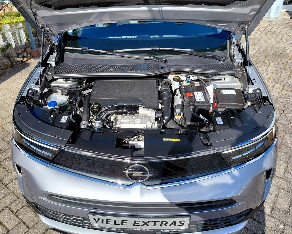 Audiosystem Multimedia, Außenspiegel elektr. verstell- und heizbar, elektr. anklappbar, Bluetooth Audio-Streaming, DAB-Tuner (Radioempfang digital), Dachhimmel Grau, Dachspoiler, Elektron. Stabilitäts-Programm Plus (ESP), Fahrassistenz-System: Fernlichtassistent, Fahrassistenz-System: Müdigkeitserkennungs-Sensor, Fahrassistenz-System: Verkehrszeichenerkennung, Fahrzeugschlüssel (2) beide klappbar, Feststellbremse elektrisch, Freisprecheinrichtung Bluetooth, Heckleuchten LED, Karosserie: 5-türig, Klimaautomatik, Kopf-Airbag-System, Kühlergrill, Opel Vizor, Rahmen in Chrom, LM-Felgen, Motor 1,2 Ltr. - 96 kW, MP3-Schnittstelle für Mobiltelefon/Handy, Nebelscheinwerfer LED, Otto-Partikelfilter (OPF), Radstand 2557 mm, Reifen-Reparaturkit, Schadstoffarm nach Abgasnorm Euro 6d, Scheinwerfer LED, Seitenairbag vorn, Sicht-Paket, Start/Stop-Anlage, Wärmeschutzverglasung