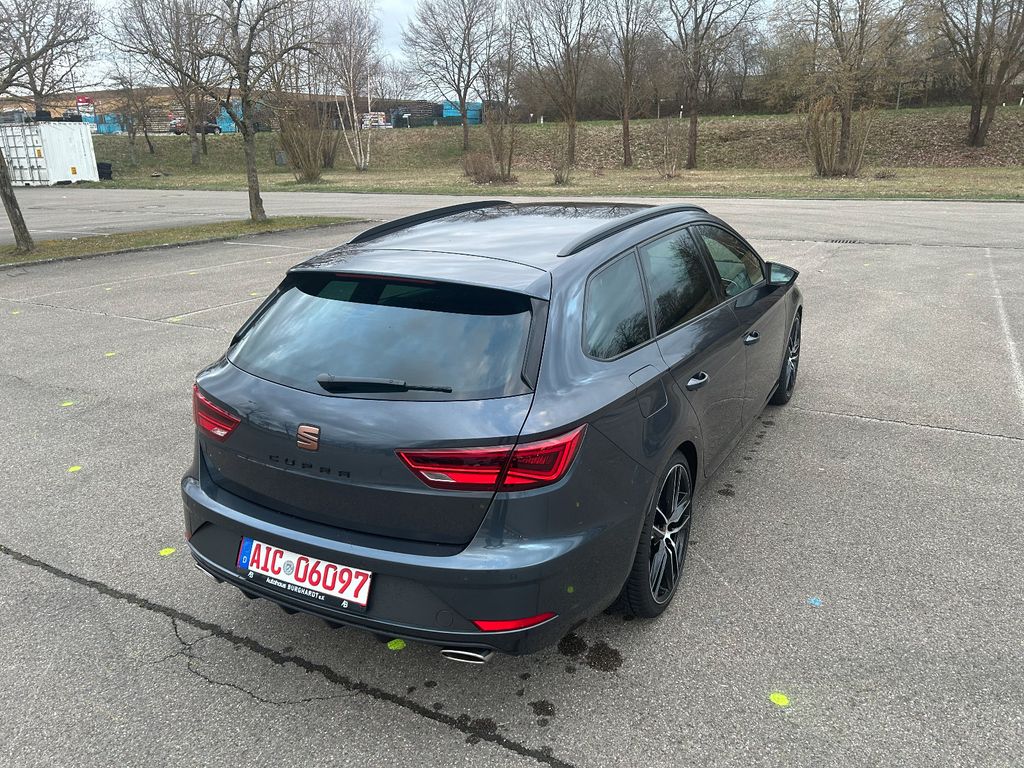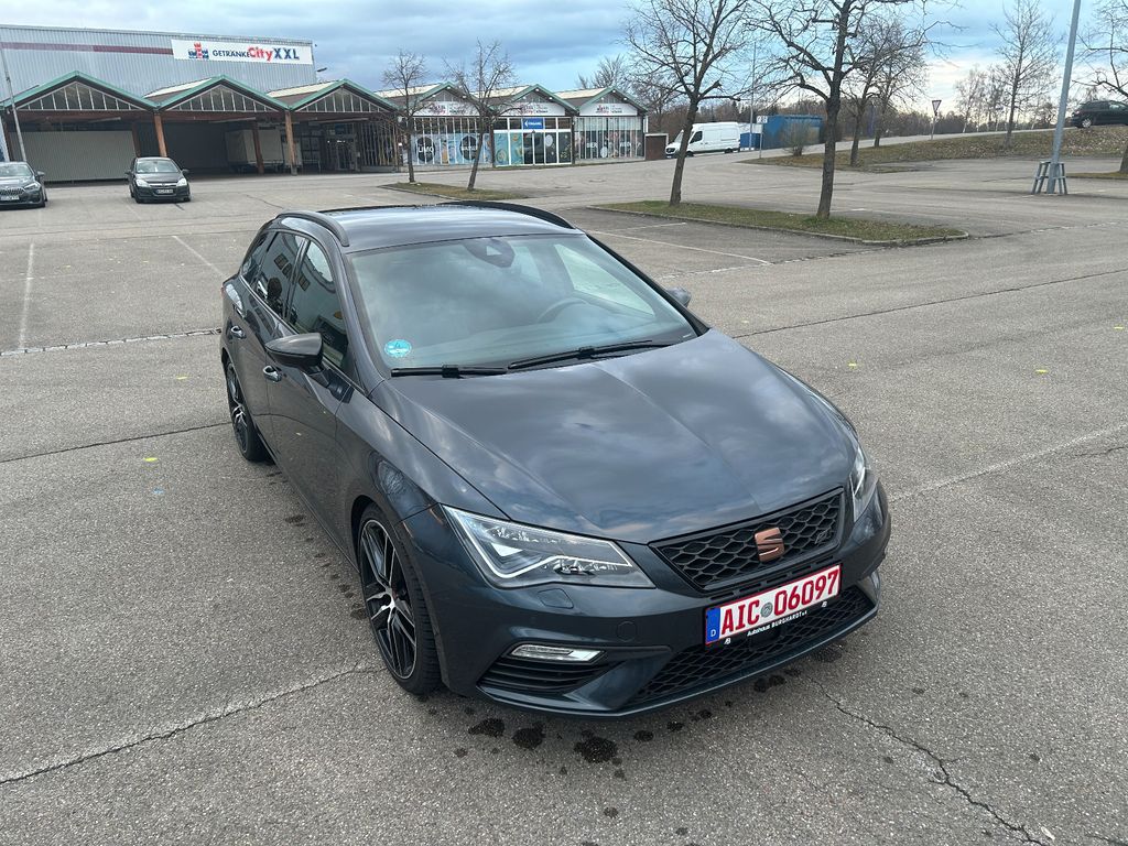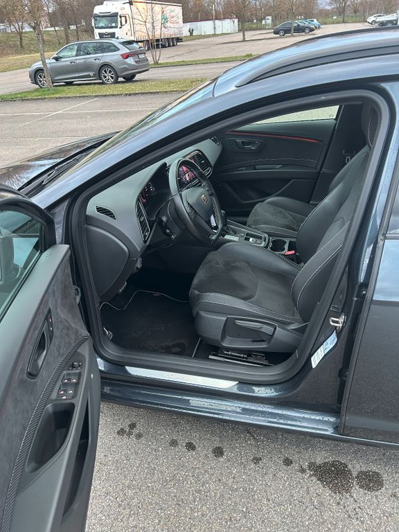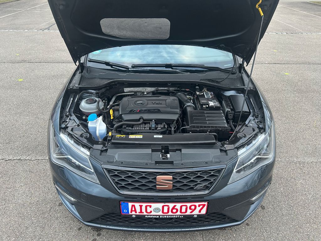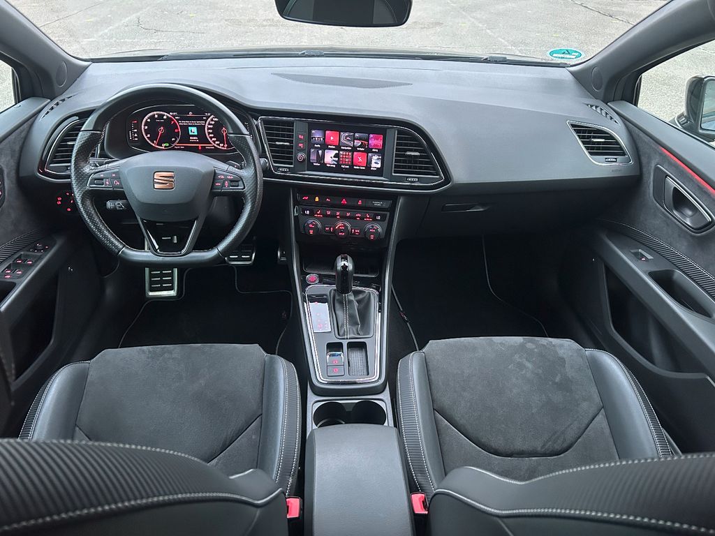3. Bremsleuchte, Ablage-Paket, Ablagetasche an Vordersitzlehnen, Airbag Beifahrerseite abschaltbar, Airbag Fahrer-/Beifahrerseite, Ambiente-Beleuchtung LED, Antriebs-Schlupfregelung (ASR), Antriebsart: Allradantrieb, Außenspiegel elektr. verstell-, heiz- und anklappbar, beide, Außenspiegel schwarz, Außentemperaturanzeige, Bordcomputer, Bremsassistent, Bremssättel Rot lackiert mit Schriftzug, Dachhimmel schwarz, Dynamic-Paket, Elektron. Differentialsperre (EDS), Fahrassistenz-System: Berganfahr-Assistent (Hill-Holder), Fahrassistenz-System: Fahrprofilauswahl (SEAT Drive Profile), Fahrassistenz-System: Umfeldbeobachtungssystem (Front assist) mit City-Notbremsfunktion, Fensterheber elektrisch hinten, Gepäckraumabdeckung / Rollo, Handschuhfach beleuchtet, Heckspoiler, Innenraumlicht-Paket LED, Isofix-Aufnahmen für Kindersitz, Karosserie: 5-türig, Klimaanlage Climatronic 2-Zonen, Knieairbag Fahrerseite, Kofferraumbeleuchtung, Kombiinstrument digital (virtual cockpit), Kopf-Airbag-System, Kopfstützen hinten (3-fach), Kopfstützen vorn verstellbar, Laderaumboden variabel und herausnehmbar, Lendenwirbelstütze Sitz vorn links, verstellbar, Lendenwirbelstütze Sitz vorn rechts, verstellbar, Licht- und Sicht-Paket, LM-Felgen, Mittelarmlehne hinten, Modellpflege, Motor 2,0 Ltr. - 221 kW 16V TSI, Otto-Partikelfilter (OPF), Parkbremse elektrisch, Reifenkontroll-Anzeige, Rücksitzlehne geteilt/klappbar (1/3-2/3), Rücksitzlehnen umklappbar mit Fernentriegelung im Kofferraum, Schadstoffarm nach Abgasnorm Euro 6d-TEMP, Schalt-/Wählhebelgriff Leder, Scheinwerfer LED, Seitenairbag, Seitenscheiben hinten und Heckscheibe abgedunkelt, Sitz vorn links höhenverstellbar, Sitz vorn rechts höhenverstellbar, Sitzbezug / Polsterung: Leder, Sitzbezug / Polsterung: Leder / Alcantara, Sonnenblende links mit Spiegel (beleuchtet), Sonnenblende rechts mit Spiegel (beleuchtet), Sport-Fahrwerk FR / Cupra, Start/Stop-Anlage, Steckdose (12V-Anschluß) im Koffer-/Laderaum, Steckdose (12V-Anschluß) vorn, Wärmeschutzverglasung
