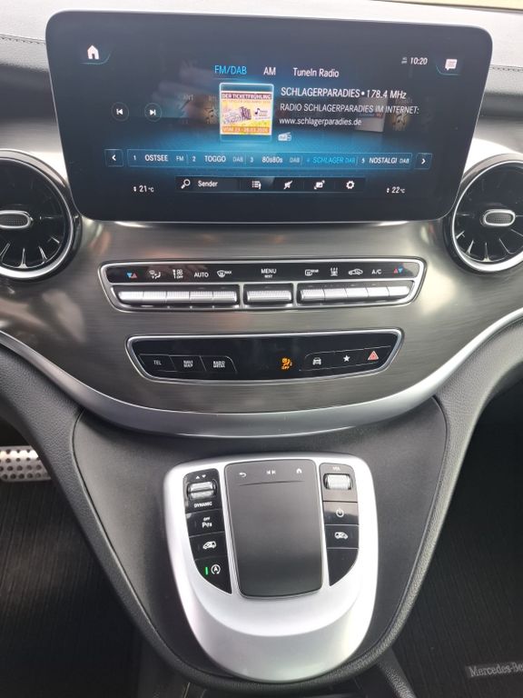 Ablagenetz an Fondsitzlehnen, Ablagenetz an Vordersitzlehne links, Adaptives Bremslicht, Airbag Beifahrerseite, Airbag Fahrerseite, Aktiver Abstands-Assistent Distronic, Ambiente-Beleuchtung, Anfahrhilfe (Berganfahr-Assistent), Anhängerkupplung: Elektrik für Anhängersteckdose, Anzeige für Waschwasserstand, Armaturentafel Oberteil in Ledernachbildung, Armlehnen Fahrgastraum, Außenspiegel asphärisch, beide, Außenspiegel elektr. verstell- und heizbar, beide, Außenspiegel mit integrierter Blinkleuchte, Außentemperaturanzeige, Beleuchtung im Haltegriff Fond mit Lesespot, BlueEfficiency-Paket, Bodenbelag: Teppich im Fahrerraum, Bodenbelag: Teppich im Lade-/Fahrgastraum, Bremsassistent, Bremssystem mit ABS+ASR, DAB-Tuner (Radioempfang digital), Dachverkleidung / Innenhimmel Dinamica schwarz, Design- und Ausstattungslinie Exclusive Edition, Design-Paket Interieur, Direktlenkung mit variabler Lenkkraft-Unterstützung, Einschaltautomatik für Fahrlicht, Einstiegsgriff hinten, Einstiegsleisten mit Schriftzug Mercedes-Benz (beleuchtet), Einstiegsleuchten, Exclusive Edition, Fahrassistenz-Paket, Fahrassistenz-System: Attention-Assist (Müdigkeitserkennungs-Sensor), Fahrassistenz-System: Fernlichtassistent Plus, Fahrassistenz-System: Pannenmanagement, Fahrassistenz-System: Seitenwind-Assistent, Fahrassistenz-System: Verkehrszeichenerkennung, Fenster für hintere Türen / Heckklappe mit Wisch-/Waschanlage, Fenster im Lade-/FG-Raum: - feststehend, hinten, Fenster im Lade-/FG-Raum: - feststehend, vorn links, Fenster im Lade-/FG-Raum: - feststehend, vorn rechts, Fernbedienung für Zusatzheizung, Feststellbremse elektrisch, Feststeller Schiebetür (Aktiv), Getriebe Automatik GTronic - (9-Stufen), Getränkehalter hinten, Gurtstraffer, Haltegriffe im Fond, Handschuhfach abschließbar, Harnstofftank (AdBlue): 24 Ltr., Heckklappe mit automatischem Öffnungs- und Schließsystem, Heckscheibe aufstellbar, Heckscheibe heizbar, Intelligent Light System LED, Karosserie/Aufbau: Bus, Karosserie/Aufbau: lang, Kindersicherung, Klimaautomatik Fond (Tempmatik), Kombiinstrument mit Farbdisplay, Komfort-Klimaautomatik Thermotronik, Komfortbeleuchtung im Fahrgast-/Laderaum, Kommunikationsmodul Mercedes me connect (Internetbasierende Dienste), Kopf-Airbag-System (Windowbag), Kopf-Schulter-Airbag (Thoraxbag) Fahrer-/Beifahrerseite, Lenkrad (Lenksäule mech. verstellbar), Lenkrad mit Multifunktion inkl. Reiserechner, Leuchtweitenregelung, Media Interface (Universal-Schnittstelle für iPod / AUX / USB), Mercedes-Benz Notrufsystem, Metallic-Lackierung, Mittelkonsole mit Kühlfach, Modellpflege, Motor 2,0 Ltr. - 174 kW CDI KAT, Multimediasystem MBUX (Touchscreen 10,25"), Navigationssystem für Multimediasystem MBUX, Panorama-Schiebedach vorn elektrisch, mit Panoramadach hinten, Park-Paket mit 360° Kamera, PKW-Zulassung, PTC Heater, Radstand 3200 mm, Reifendruck-Kontrollsystem, Rückspiegel innen, Schadstoffarm nach Abgasnorm Euro 6d, Scheibenwaschanlage beheizt, Scheibenwischer mit Regensensor, Schiebetür Lade-/Fahrgastraum links, Schiebetür links elektrisch, Schiebetür rechts elektrisch, Sicherheitsgurt-System mit Warnanlage (Beifahrerseite), Sitzausstattung: Isofix-Kindersitz-System, Sitzausstattung: Schnellverriegelung für Sitzschienen-System, Sitzbezug / Polsterung: Leder Nappa, Sitze im Fahrerhaus: Fahrer- und Beifahrersitz klimatisiert, Sitze im Fahrerhaus: Fahrersitz elektr. verstellbar (mit Memory), Sitze im Fahrerhaus: Fahrersitz mit Lendenwirbelstütze, Sitze im Lade-/FG-Raum: 1.Reihe, 1 Einzelsitz links, Sitze im Lade-/FG-Raum: 1.Reihe, 1 Einzelsitz rechts, Sitze im Lade-/FG-Raum: 1.Reihe, Sitzklimatisierung im Fond, Sonnenblenden mit Spiegel (beleuchtet), Spiegel-Paket, Sport-Paket Exterieur, Steckdose (12V-Anschluß) im Lade-/Fahrgastraum, Steckdosen (12V-Anschluß) im Lade-/Fahrgastraum, 2-fach, Stoßfänger / Stoßf.-Leiste seitlich + Griff an Heckklappe lackiert, Surround-System Burmester, Urban Guard Fahrzeugschutz, Verglasung hinten abgedunkelt / Schwarzglas, Vlies-Batterie 92 Ah, Vorbereitung Navigationssystem (für Multimediasystem MBUX), Warmluftkanal zum Lade-/Fahrgastraum, Wartungsintervall-Anzeige Assyst, Wärmeschutzverglasung, Zusatzheizung (Warmwasser)