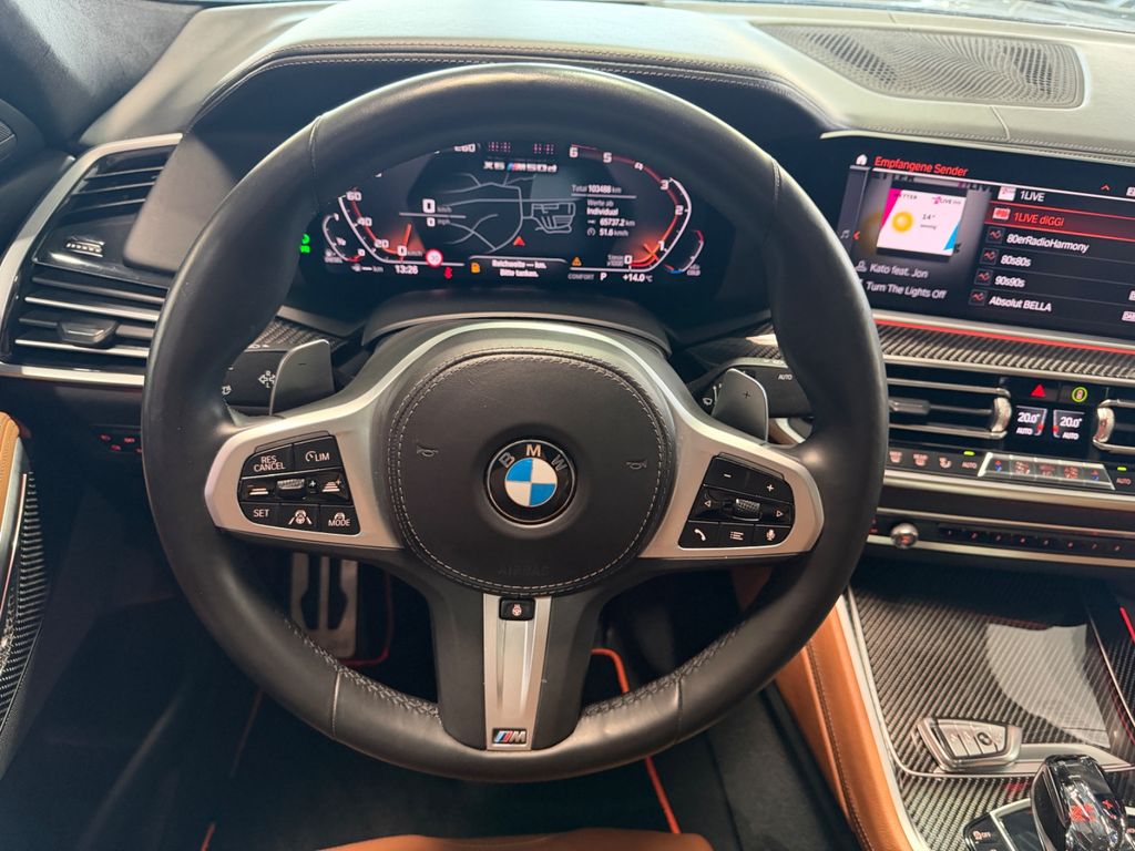 Adaptives Fahrwerk M Professional, Außenausstattung: Shadow-Line Hochglanz (erweiterter Umfang), BMW Display-Key, Dachreling Hochglanz Shadow-Line, Entertainment-Paket, Exklusiv-Paket, Fahrassistenz-System: BMW Gestiksteuerung, Gepäckraum-Paket, Getränkehalter mit Kühlfunktion / Wärmefunktion, Heckspoiler (M Carbon), Innenausstattung: Interieurleisten Carbon, Innovations-Paket, Instrumententafel lederbezogen, Klimaautomatik 4-Zonen mit autom. Umluft-Control, LM-Felgen vorn/hinten: 9,5x22 / 10,5x22 (V-Speiche 747 M, Bicolor, Ceriumgrau), M Multifunktionssitze vorn, Panoramadach Sky Lounge (Glas, LED-Beleuchtung), Parkassistent-Paket Plus, Sicherheitsgurte M, Sicherheitssystem Active Protection, Sonnenschutzrollo an Türscheiben hinten, Sonnenschutzverglasung (hinten abgedunkelt), Universal-Garagentoröffner, Verglasung Akustikglas, Winterfreude-Paket