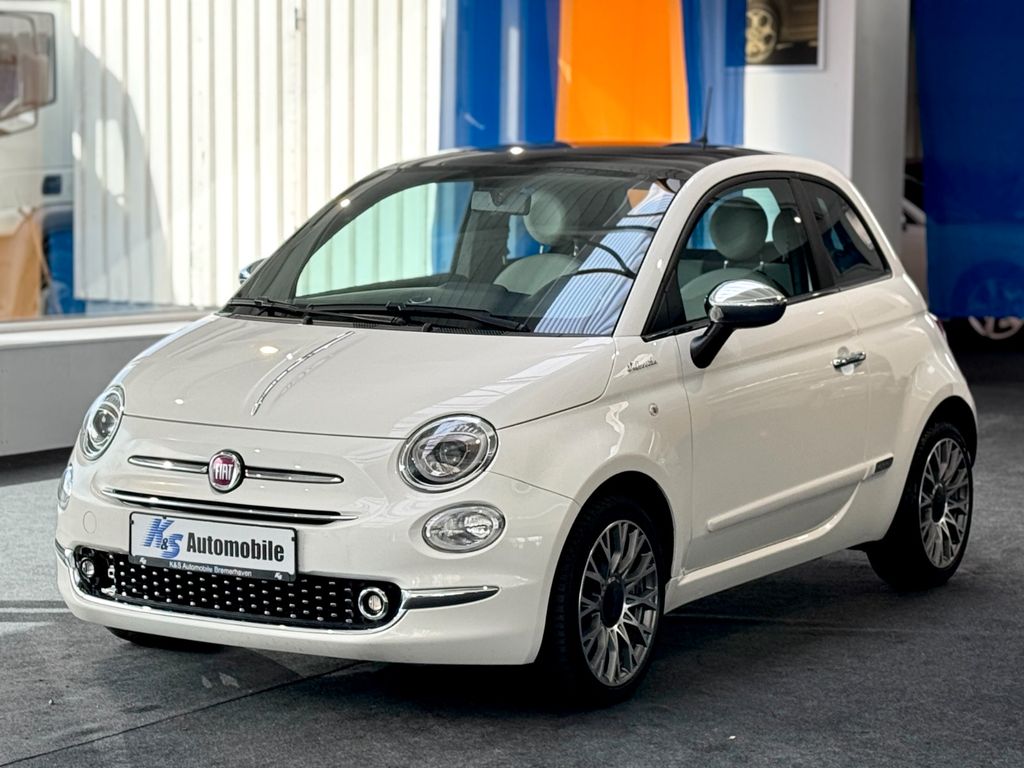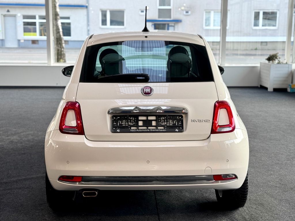 Ablagetasche an Vordersitzlehnen, Airbag Fahrer-/Beifahrerseite, Auspuffblende verchromt, Autom. Begleitfunktion der Beleuchtung (Follow me home), Automatische Türverriegelung, Außenspiegel Wagenfarbe, Beifahrerairbag abschaltbar, Bordcomputer, Fahrassistenz-System: Bremsassistent, Fensterzierleisten verchromt, Fußmatten, Geschwindigkeits-Begrenzeranlage, Heckscheibe heizbar, Innenausstattung: Dekoreinlagen Armaturenbrett, lackiert, Isofix-Aufnahmen für Kindersitz an Rücksitz, Karosserie: 3-türig, Knieairbag Fahrerseite, Komfort-Paket, Kopf-Airbag-System vorn und hinten, Kopfstützen hinten, Kopfstützen vorn verstellbar, Kühlergrill mit Chromrahmen, Kühlergrill verchromt, Lenksäule (Lenkrad) höhenverstellbar, LM-Felgen, Mild-Hybrid 51 kW (Motor 1,0 Ltr. - 51 kW), Modellpflege, Panoramadach (Glas), Radioempfang digital (DAB+), Reifendruck-Kontrollsystem, Rücksitz geteilt / klappbar, Schadstoffarm nach Abgasnorm Euro 6d, Schalt-/Wählhebelgriff Leder, Seitenairbag vorn, Seitenschutzleisten lackiert inkl. Emblem 500, Sitzbezug / Polsterung: Stoff / Vinyl, Smartphone Schnittstelle (Apple CarPlay & Android Auto), Start/Stop-Anlage, Steckdose (12V-Anschluß) im Armaturenbrett, Steckdose (12V-Anschluß) vorn, Stoßfänger Wagenfarbe, Tagfahrlicht LED, Tankdeckel abschließbar, Türgriffe außen verchromt, Wärmeschutzverglasung