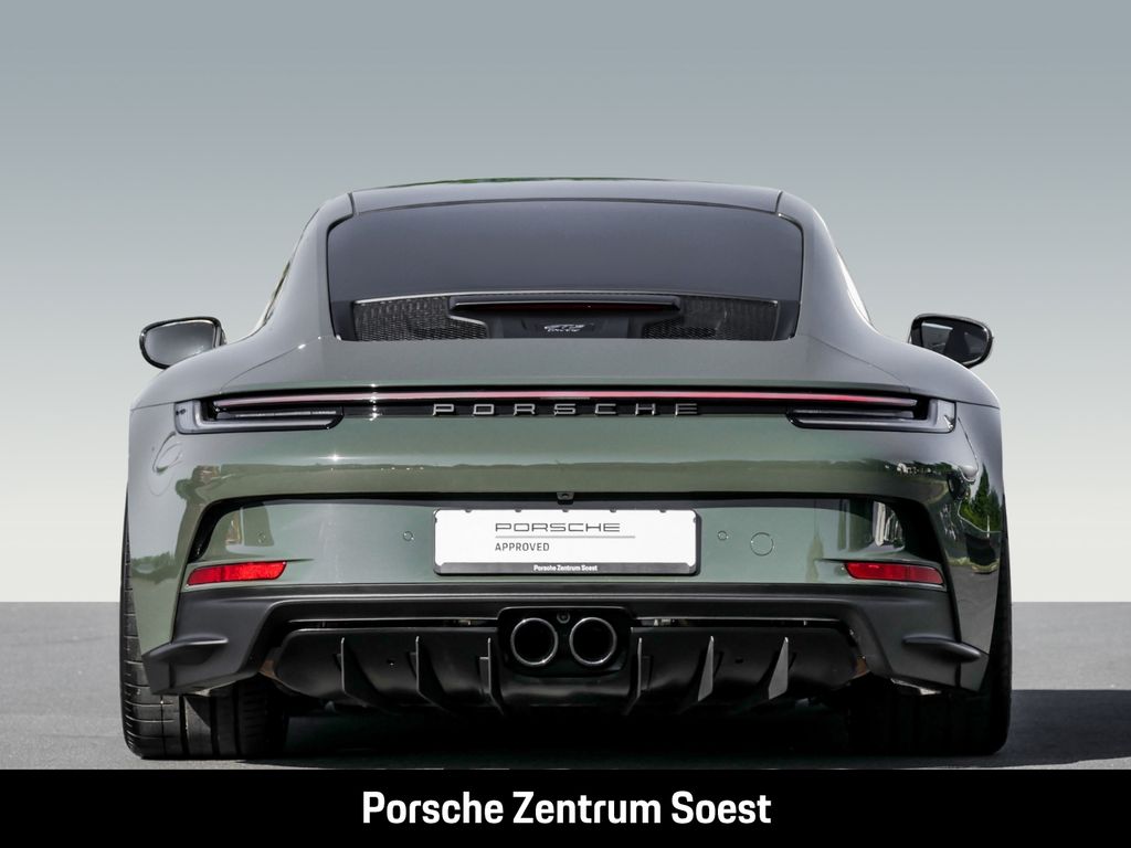 - Weiteres: (04S) Touring-Paket Exterieur in Schwarz, (3FF) Leichtbaudach Carbon, (ASV) Schutzfolierung Vorderwagen, (UD1) LED-Türprojektoren „PORSCHE“ Schriftzug, (2W6) Exclusive Design Tankdeckel, (6FP) Außenspiegel-Oberschalen Carbon, (2UH) Liftsystem Vorderachse, (8LH) Chrono Paket, (0I2) Kraftstofftank 90 l, (1LX) Porsche Ceramic Composite Brake (PCCB) mit Bremssätteln lackiert in Schwarz (hochglanz), (1NX) Räder lackiert in Schwarz (seidenglanz), (1G8) Reifenreparaturset, (Q1J) Adaptive Sportsitze Plus (18-Wege, elektrisch), (QQ2) Licht-Design-Paket, (4A3) Sitzheizung, (QE1) Ablagenpaket, (9JD) Raucherpaket, (6A7) Feuerlöscher, (BHV) Erweiterungspaket Leder - agavengrün, (2C6) Verkleidung Lenksäule Leder, (6E8) Personalisierte Prägung auf Deckel Ablagefach Mittelkonsole, (AVC) Luftdüsen Leder mit Lamellen Leder - agavengrün, (5HD) Interieur-Zusatzpaket Schalt- und Türtafel Leder, (6NN) Dachhimmel sowie Verkleidung A-/B-/C-Säule in Race-Tex, (5XK) Sonnenblenden Race-Tex., (5TX) Erweitertes Interieur-Paket Carbon matt, (BZD) Personalisierte Türeinstiegsblenden Carbon matt, beleuchtet, (ACJ) Fußmatten Carbon mit Ledereinfassung - agavengrün, (P19) Pedalerie und Fußstütze Aluminium, (9VL) BOSE® Surround Sound-System, (7I2) Porsche Vehicle Tracking System Plus (PVTS Plus), (00480) Farbwahl Faden - agavengrün, (6RD) Interieur-Paket Ziernähte in abweichender Farbe, (8JU) LED-Matrix Hauptscheinwerfer abgedunkelt inkl. Porsche Dynamic Light System Plus (PDLS Plus), (8VH) Exclusive Design Heckleuchten, (P14) Automatisch abblendende Innen-/Außenspiegel mit integriertem Regensensor, (VW7) Privacy-Verglasung, (KA2) ParkAssistent hinten inkl. Rückfahrkamera, (QR9) Verkehrszeichenerkennung, (VC2) HomeLink®, Reifendruck-Kontrollsystem, Geschwindigkeits-Regelanlage (Tempomat), Außenspiegel elektr. verstell- und heizbar, beide, Getriebe 6-Gang - Sport, Schadstoffarm nach Abgasnorm Euro 6d, Kopfstützen vorn mit Porschewappen, Lenkradkranz und Schalt-/Wählhebelgriff Glattleder, schwarz, Porsche Torque Vectoring Plus (PTV Plus), Sport-Fahrwerk (PASM) elektronisch gesteuert, Sound-System BOSE, Einstiegsblenden (Carbon) beleuchtet, mit Schriftzug Individual, Matrix-LED-Scheinwerfer, abgedunkelt, inkl. Porsche Dynamic Light System Plus (PDLS+), Adaptive Sportsitze inkl. Sitzverstellung 18-Wege und Memory-Paket, Einstiegsleuchte mit LED-Projektor Porsche-Schriftzug, Ambiente-Beleuchtung fondorientiert, Mittelkonsole, Deckel Ablagefach Leder mit personalisierter Prägung, HD Matrix-LED-Scheinwerfer, abgedunkelt, inkl. Porsche Dynamic Light System Plus (PDLS+), LM-Felgen (schwarz, seidenglänzend lackiert), Airbag Fahrer-/Beifahrerseite, Kopf-Airbag-System Porsche Side Impact Protection System (POSIP), Connect Plus (Bluetooth, Apple CarPlay, WLAN, Vehicle-Tracking-System), Mobile Online Dienste Android Auto, Notrufsystem (eCall), Ablage-Paket, Außen-/Innenspiegel mit Abblendautomatik, Berg-Anfahr-Assistent (Hill-Holder), Blinkleuchten LED, Carbon Dach, Diebstahl-Warnanlage