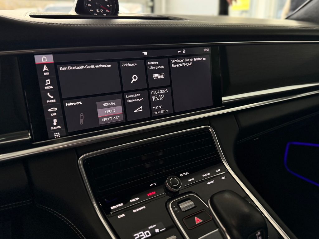 Ablage für Smartphone, Adaptive Sportsitze inkl. Sitzverstellung 18-Wege und Memory-Paket, Airbag Fahrer-/Beifahrerseite, Aktive Motorhaube, Antischlupfregelung (ASR), Antriebsart: Allradantrieb, Außenspiegel asphärisch, links, Außenspiegel elektr. anklappbar, Außenspiegel elektr. verstell- und heizbar, Außenspiegel mit Abblendautomatik, Außenspiegel mit Umfeldleuchte LED, Bremssättel Rot lackiert, Connect Plus (Bluetooth, Apple CarPlay, WLAN, Vehicle-Tracking-System), Dachhimmel Alcantara, Diebstahl-Warnanlage mit Innenraumüberwachung, Einschaltautomatik für Fahrlicht, Fensterzierleisten schwarz (Hochglanz), Frontscheibe Dämmglas mit Bandfilter oben, Frontscheibe mit Bandfilter oben, Gepäckraumabdeckung / Rollo, Getriebe 8-Gang - Doppelkupplungsgetriebe (PDK), Getränkehalter, Heckklappe mit automatischem Öffnungs- und Schließsystem, Heckleuchten LED, abgedunkelt, Heckspoiler adaptiv ausfahrbar (4-Wege), Innenraumfilter: Aktivkohlefilter (Geruchsfilter), Innenspiegel mit Abblendautomatik, Interieur-Paket: Aluminium gebürstet, schwarz, Isofix-Aufnahmen für Kindersitz an Rücksitz, Karosserie: 4-türig, Knieairbag, Kopf-Airbag-System (Curtain-Airbag), Kopf-Airbag-System Porsche Side Impact Protection System (POSIP), Kraftstofftank: 90 Ltr., Lenkrad heizbar (Sport / Alcantara, 3-Speichen) mit Schaltfunktion, Luftauslassgitter Kotflügel schwarz lackiert, Modellbezeichnung lackiert, Motor 4,0 Ltr. - 338 kW V8 Turbo KAT, Otto-Partikelfilter (OPF), Panorama-Schiebedach zweiteilig vorn elektrisch, Parkbremse elektrisch, Porsche Communications Management (PCM) inkl. Online - Navigationsmodul, Porsche Traction Management (PTM), Radstand kurz, Reifen-Reparaturkit, Reifendruck-Kontrollsystem, Rücksitzlehne geteilt/klappbar (60:40), Schadstoffarm nach Abgasnorm Euro 6d-TEMP, Seitenairbag vorn, Sonnenblenden mit Spiegel (beleuchtet), Sport-Auspuffanlage, Endrohre schwarz, Sport-Chrono-Paket, Sport-Design-Paket, Start/Stop-Anlage, Tagfahrlicht 4-Punkt-LED, USB-Anschlüsse im Fond (nur Ladefunktion), Ambiente-Beleuchtung, Head-up-Display, Innenspiegel automatisch abblendend, Regensensor