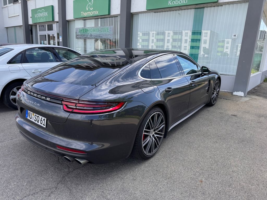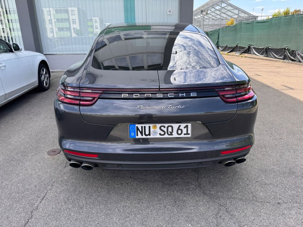 Airbag Fahrer-/Beifahrerseite, Aktive Motorhaube, Antischlupfregelung (ASR), Antriebsart: Allradantrieb, Außenspiegel asphärisch, links, Außenspiegel elektr. anklappbar, Außenspiegel elektr. verstell- und heizbar, Außenspiegel mit Abblendautomatik, Außenspiegel mit Umfeldleuchte LED, Bremssättel Rot lackiert, Connect Plus (Bluetooth, Apple CarPlay, WLAN, Vehicle-Tracking-System), Dachhimmel Alcantara, Diebstahl-Warnanlage mit Innenraumüberwachung, Einschaltautomatik für Fahrlicht, Einstiegsblenden (Aluminium), Fensterzierleisten Aluminium, Frontscheibe mit Bandfilter oben, Fußmatten, Gepäckraumabdeckung / Rollo, Getriebe 8-Gang - Doppelkupplungsgetriebe (PDK), Getränkehalter, Heckklappe mit automatischem Öffnungs- und Schließsystem, Heckleuchten LED, Heckspoiler adaptiv ausfahrbar (4-Wege), Innenausstattung: Glattleder, Serienlederfarbe, Innenraumfilter: Aktivkohlefilter (Geruchsfilter), Innenspiegel mit Abblendautomatik, Interieur-Paket: Holz, Nussbaumwurzel, Isofix-Aufnahmen für Kindersitz an Rücksitz, Karosserie: 4-türig, Klimaautomatik 2-Zonen, Knieairbag, Komfortzugang (Schlüssellose Türentriegelung), Kopf-Airbag-System (Curtain-Airbag), Kraftstofftank: 90 Ltr., Luftauslassgitter Kotflügel lackiert, Metallic-Lackierung, Motor 4,0 Ltr. - 404 kW V8 Turbo KAT, Parkbremse elektrisch, Porsche Communications Management (PCM) inkl. Online - Navigationsmodul, Porsche Traction Management (PTM), Radstand kurz, Reifen-Reparaturkit, Reifendruck-Kontrollsystem, Rücksitzlehne geteilt/klappbar (60:40), Schadstoffarm nach Abgasnorm Euro 6, Seitenairbag vorn, Sonnenblenden mit Spiegel (beleuchtet), Sound-System BOSE, Start/Stop-Anlage, Tagfahrlicht 4-Punkt-LED, Turbo, USB-Anschlüsse im Fond (nur Ladefunktion), Verglasung getönt