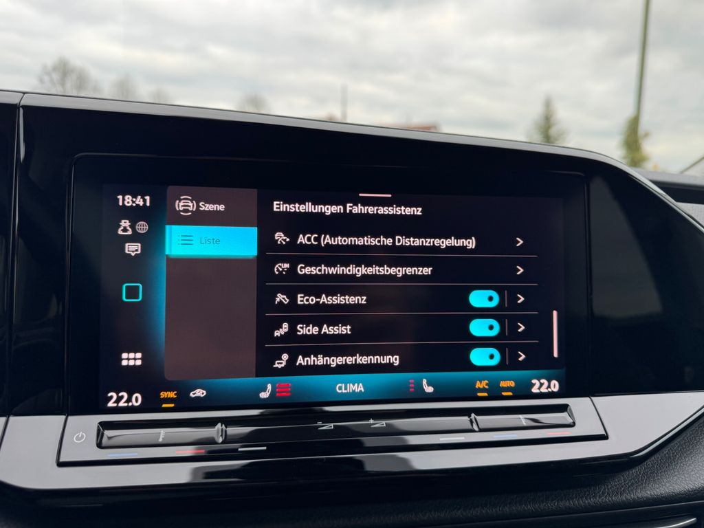 Abfallbehälter, Ablagefächer in Dachkonsole, Airbag Fahrer-/Beifahrerseite, Beifahrerairbag abschaltbar, Audiosystem: Ready 2 Discover (Touchscreen 10", Vorbereitung Navigationsfunktion), Ausstattung Style, Automatische Fahrlichtschaltung (ALS) mit Leaving Home / Coming-Home-Lichtfunktion, Außenspiegel elektr. verstell-, heiz- und anklappbar, Außenspiegel schwarz lackiert, Türgriffe außen Wagenfarbe, Abdeckung Schiebetürleiste schwarz, Bodenbelag hinten (Teppich), Bodenbelag vorn (Teppich), Dachreling silber, Digital Cockpit PRO (Instrumentenanzeige digital), Einparkhilfe vorn und hinten, Elektron. Stabilitäts-Programm (ESP) Bremsassistent, ASR/ABS, EDS, MSR, Fahrassistenz-System: Abbiegebremsfunktion und Ausweichunterstützung, Fahrassistenz-System: Ablenkungs- und Müdigkeitserkennung, Fahrassistenz-System: Multikollisionsbremse (Multi Collision Brake), Fahrassistenz-System: Spurhalteassistent (Lane Assist), Fahrassistenz-System: Umfeldbeobachtungssystem (Front assist) mit City-Notbremsfunktion, Fahrassistenz-System: Verkehrszeichenerkennung, Frontkamera (Multifunktionskamera Frontscheibe), Funkschlüssel (2) klappbar, Gepäckraumabdeckung / Rollo, Geschwindigkeitsbegrenzer mit vorausschauender Geschw.-Regelung, Handschuhfach mit Klappe, beleuchtet, Heckleuchten LED, Heckscheibe heizbar, Heckscheibenwischer, Innenausstattung: Dekoreinlagen schwarz glänzend, Innenspiegel mit Abblendautomatik, Isofix-Aufnahmen für Kindersitz an Rücksitze (inkl. i-Size-Kindersitze), Karosserie: 5-türig, Kindersicherung im Fahrgastraum elektr. betätigt, Klapptische in Fahrer- und Beifahrersitzlehne integriert, Klimaanlage Climatronic 2-Zonen, Lautsprecher (6), Lenkrad (Leder) mit Multifunktion und Schaltfunktion, Lenksäule (Lenkrad) mechan. verstellbar, Höhen-/Längsverstellung, Leseleuchten hinten LED, LM-Felgen, Mittelarmlehne vorn höhen-/längsverstellbar, Ablagefach, Luftausströmer hinten, Motor 1,5 Ltr. - 85 kW 16V TSI, Multimedia-Schnittstelle USB (Typ C) vorn und USB-Ladeanschluß hinten mit erhöhter Ladeleistung, Nichtraucher-Paket, Notrufsystem, Parkbremse elektrisch mit Auto-Hold-Funktion, Pedale Edelstahl / Aluminium-Design, PKW-Zulassung, Radioempfang digital (DAB+), Radstand 2970 mm, Reifen-Reparaturkit (Tire Mobility Set), Reifenkontroll-Anzeige, Rückfahrkamera (Rear View), Schadstoffarm nach Abgasnorm Euro 6e, Scheibenwischer mit Licht- und Regensensor, Scheinwerfer LED, Schiebetür links, Schiebetür rechts, Schublade / Ablagefach unter Sitze vorn, Seitenairbag vorn mit Center-Airbag, Kopf-Airbag-Einheit vorn und hinten, Seitenfenster im Lade-/Fahrgastraum hinten links, fest, Seitenfenster im Lade-/Fahrgastraum hinten rechts, fest, Seitenfenster im Lade-/Fahrgastraum vorn links, fest, Seitenfenster im Lade-/Fahrgastraum vorn rechts, fest, Sicherheitsgurte hinten außen mit Gurtstraffer, Sicherheitsgurte vorn mit Gurtstraffer, höhenverstellbar, Sitz vorn rechts mit Lehnenentriegelung, Sitz-Paket 7-Sitzer, Sitzbezug / Polsterung: Mikrovlies ArtVelours / Kunstleder, Sonnenblenden mit Spiegel, Start/Stop-Anlage, Steckdose 12V im Koffer-/Laderaum, Stoßfänger Wagenfarbe, Türdichtungen mit Staubschutz, Türverkleidung Kunstleder, Verbandkasten und Warndreieck, Verglasung hinten abgedunkelt (74 %), Verkleidung im Lade-/FG-Raum: Komfort, Verzurrösen im Gepäck-/Laderaum, Vorbereitung für Alkohol-Wegfahrsperre (Alcolock), Vorbereitung Onlinedienste, Warnanlage für Sicherheitsgurte vorn und hinten