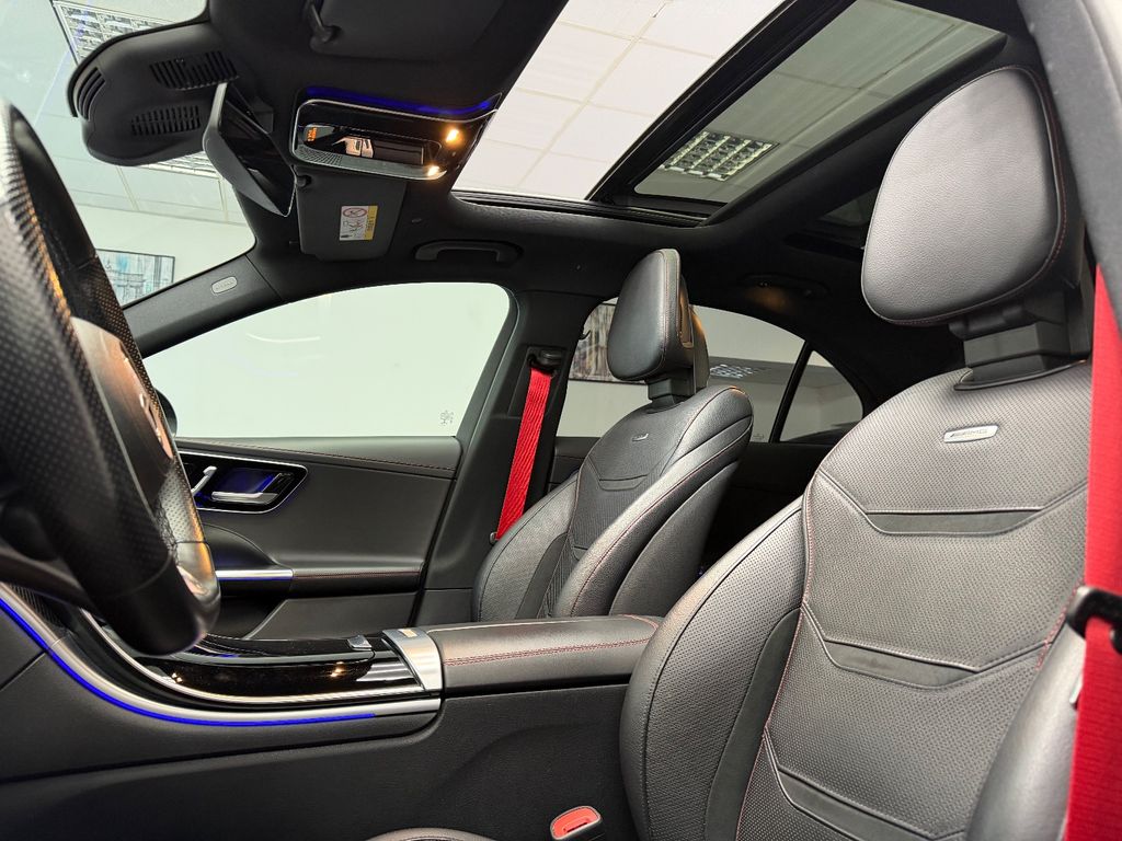 Ambiente-Beleuchtung (Plus) mit direkter Lichtlinie, AMG Driver's Package, AMG Track Package, Fahrassistenz-System: Verkehrs-Informations-System Live Traffic, Head-up-Display (Frontsichtanzeige), Innenausstattung: Zierteile Carbon (AMG), Kraftstofftank: 66 Ltr. (größerer Inhalt, Volumen 1), LM-Felgen vorn/hinten: 8x19 / 9,5x19 (AMG, 5-Doppelspeichen), Motorsound-System (AMG Real Performance Sound), Multimediasystem MBUX Entertainment, Night-Paket (AMG), Night-Paket II, Panorama-Schiebedach, Reifen-Reparaturset (Tirefit), Sicherheitsgurte rot, Sitzbezug / Polsterung: Leder Nappa, 2-farbig, Sound-System mit Soundpersonalisierung, Spiegel-Paket, Surround-System Burmester, Vorrüstung car sharing