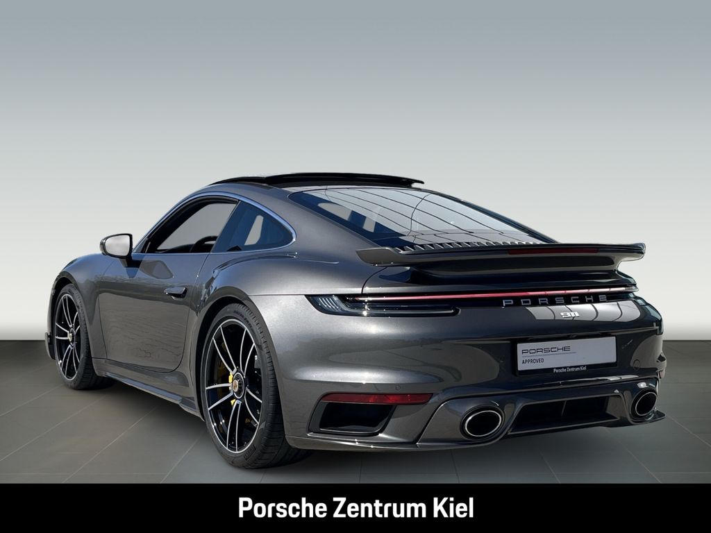 - Weiteres: Das Fahrzeug wird bis zur Übergabe nach Maßgabe der Porsche Standards aufbereitet. Dabei werden, wenn notwendig, auch einzelne Bauteile ausgetauscht oder Lackierarbeiten durchgeführt. . / Aktuell besteht leider keine Möglichkeit für Export- und Händleranfragen, wir bitten um Ihr Verständnis. NO DEALER, NO EXPORT / Unfortunately there is no possibility for export or dealer inquiries., (3FD) Elektrisches Schiebe-/Hubdach, (6FU) Spiegelfüße lackiert in Exterieurfarbe, (QJ2) Seitenscheibenleisten Aluminium, (VK1) Lufteinlässe im Fondseitenteil lackiert in Exterieurfarbe, (2RA) Schriftzug „911, (UD1) LED-Türprojektoren „PORSCHE“ Schriftzug, (VM2) SportDesign Paket 911 Turbo, (2UH) Liftsystem Vorderachse, (0P8) Sportabgasanlage (Endrohrblenden silberfarben), (1N3) Servolenkung Plus, (3J7) Porsche Wappen auf Kopfstützen, (4A3) Sitzheizung vorn, (2PJ) GT-Sportlenkrad, beheizt, (4D3) Sitzbelüftung vorn, (7TM) Interieur-Paket Leder, (QE1) Ablagenpaket, (VT2) Türeinstiegsblenden Aluminium gebürstet in Darksilver, beleuchtet, (5XH) Sonnenblenden Leder, (ALB) Cupholderblende Leder, (8JU) LED-Matrix Hauptscheinwerfer abgedunkelt inkl. Porsche Dynamic Light System Plus (PDLS Plus), (8VH) Exclusive Design Heckleuchten, (VW4) Leichtbau- und Geräuschschutzverglasung, (VC2) HomeLink®, (7Y1) Spurwechselassistent, (KA6) ParkAssistent inkl. Surround View, (QQ2) Licht-Design-Paket, (P60) Spurhalteassistent inklusive Verkehrszeichenerkennung, (9JD) Raucherpaket, (8T3) Abstandsregeltempostat
