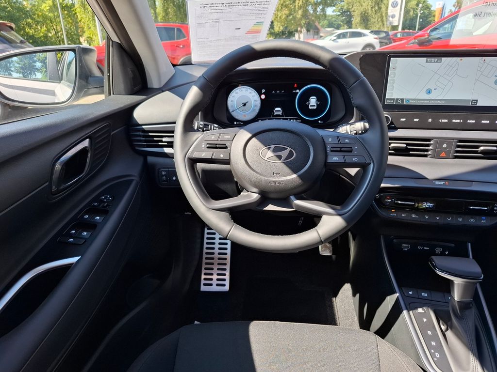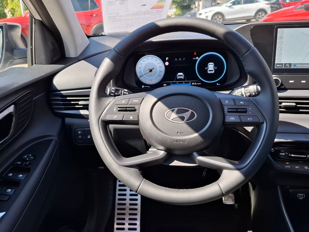 Technik + Sicherheit:Elektron. Stabilitätskontrolle (ESC) mit Bremsassistent; ABS; ASR; Airbag Fahrerseite; Kopf-Airbag-System; Airbag Beifahrerseite abschaltbar; Seitenairbag vorn; Alarmanlage; Airbag Beifahrerseite; Einschaltautomatik für Fahrlicht / Lichtsensor; Sicherheitssystem mit automatischem Notruf (ERA GLONASS / eCall); Start/Stop-Anlage; Gurtstraffer; Otto-Partikelfilter (OPF); Servolenkung; Heckscheibe heizbar; Warnanlage für Sicherheitsgurte, Fahrer-/Beifahrerseite; Multikollisionsbremse (Multi Collision Brake); Service-System: Remote Services (Blue Link); Insassenalarm (ROA); Wegfahrsperre (elektronisch); Motor 1,0 Ltr. - 74 kW TGDI KAT