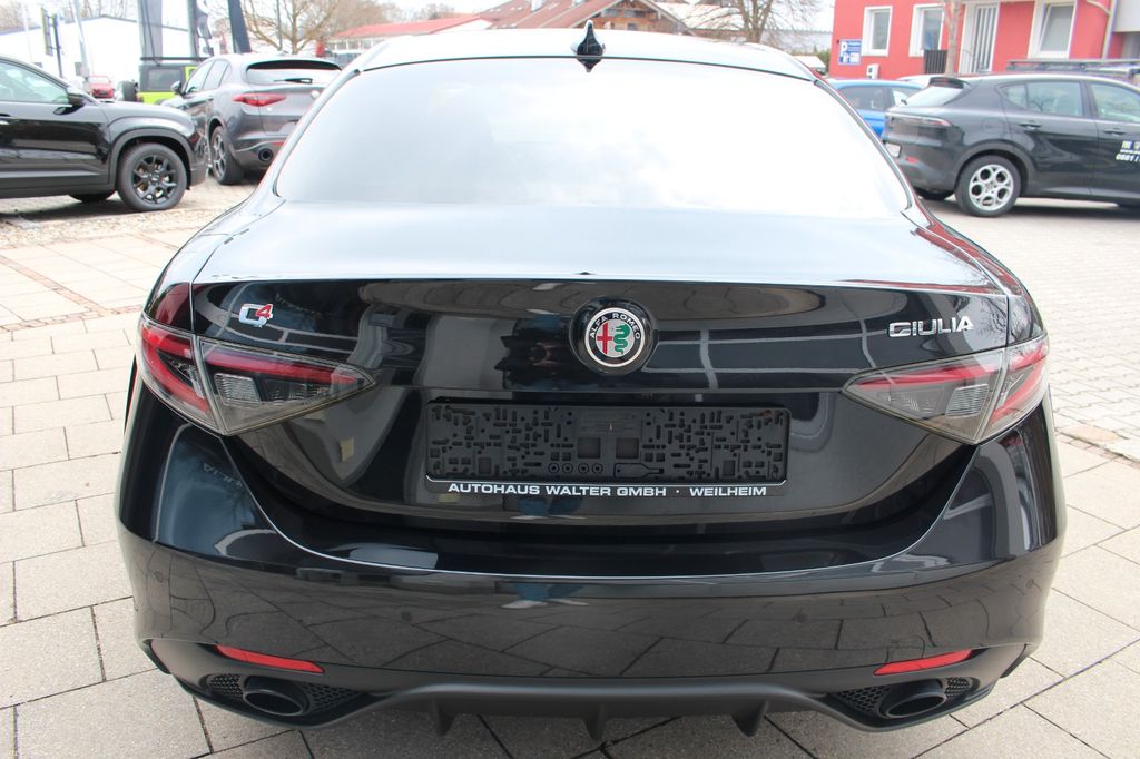 Airbag Beifahrerseite abschaltbar, Airbag Fahrer-/Beifahrerseite, Aktive Giermomentkontrolle (AYC), Anhänger-Stabilisierungs-Programm (TSA), Antriebs-Schlupfregelung (ASR), Antriebsart: Allradantrieb, Außenspiegel elektr. verstell-, heiz- und anklappbar, Außenspiegel mit Abblendautomatik, Außenspiegel schwarz, glänzend, Blinkleuchten LED in Außenspiegel integriert, Bremsanlage verstärkt, Bremsassistent (HBA / EBA), Bremslicht mit Notfallfunktion (Einschaltautomatik Warnblinkanlage), Dachhimmel schwarz, Dynamic Steering Torque (DST), Einparkhilfe elektronisch vorn und hinten, Elektron. Bremskraftverteiler (EBD), Elektron. Stabilitätskontrolle (ESC), Elektron. Traktionskontrolle, Fahrassistenz-System: Alfa Romeo D.N.A.-Fahrdynamik-System, Fahrassistenz-System: Autonomer Notbrems-Assistent (AEB), Fahrassistenz-System: Berganfahrhilfe (Hill-Holder), Fahrassistenz-System: Fernlichtassistent, Fahrassistenz-System: Frontkollisionswarnung (FCW), Fahrassistenz-System: Spurhalteassistent (Lane Departure Warning), Fahrassistenz-System: Totwinkel-Assistent, Fahrwerk Aktiv mit elektronischer Stoßdämpferregelung (Active Suspension), Fensterheber elektrisch vorn + hinten, Fensterrahmen schwarz, Frontgrill Anthrazit, Frontscheibe infrarot-reflektierend, Fußmatten, Getriebe Automatik - (8-Stufen), Getränkehalter, Gurtstraffer, Handschuhfach mit Kühlfunktion, Heckleuchten LED, Induktionsladeschale für Smartphone, Infotainment-System: UConnect 3D Nav (Farbbildschirm 8,8"), Innenausstattung: Interieurleisten Aluminium, Innenspiegel mit Abblendautomatik, Isofix-Aufnahmen für Kindersitz, Karosserie: 4-türig, Keyless-Entry, Klimaautomatik 2-Zonen, Kopf-Airbag-System, Kopfstützen hinten, Kurvenbremskontrolle (CBC / ESBS), Lenkrad (Sport, unten abgeflacht), Lenksäule (Lenkrad) verstellbar (vertikal / axial), Licht- und Regensensor, LM-Felgen, Luftdüsen im Fond, Matrix-LED-Scheinwerfer (Adaptives Scheinwerferlicht), Mittelarmlehne vorn mit Ablagefach, Modellpflege (2), Motor 2,0 Ltr. - 206 kW Turbo KAT, Motor-Schleppmoment-Regulator (MSR / EDC), Otto-Partikelfilter (OPF), Parkbremse elektrisch, Pedale Aluminium, Premium-Paket, Radnabenabdeckungen, Radstand 2820 mm, Regen-Bremsassistent (RBA), Reifen-Reparaturkit, Reifendruck-Kontrollsystem, Rückfahrkamera, Rücksitz geteilt / klappbar (Asymmetrisch), Schadstoffarm nach Abgasnorm Euro 6d, Schalt-/Wählhebelgriff Leder perforiert, Schaltpunktanzeige (Gear Shift Indicator), Scheibenwaschdüsen heizbar, Seitenairbag, Seitenscheiben hinten und Heckscheibe abgedunkelt, Smartphone Schnittstelle (Apple CarPlay & Android Auto), Sonnenblende links mit Spiegel (beleuchtet), Sperrdifferential (Q2), Start-Stop-Knopf, Start/Stop-Anlage, Steckdose (12V-Anschluß) in Mittelkonsole, Stoßfänger vorn und hinten im Veloce Design, Türgriffe außen mit LED-Beleuchtung, Veloce-Paket, Warnanlage für Sicherheitsgurte