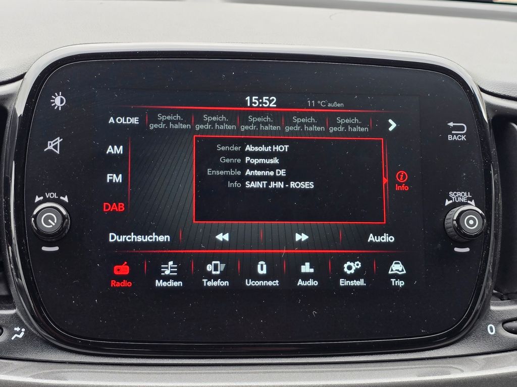 4 Lautsprecher, Airbag Fahrer-/Beifahrerseite, Antriebs-Schlupfregelung (ASR), Armaturenbrett farbig (Wagenfarbe), Audiosystem: Radio mit 3,8"-Display, Bluetooth und DAB und USB, Automatische Türverriegelung, Außenspiegel elektr. verstellbar, beide, Außenspiegel Kappe Titan-Grau, Fahrassistenz-System: Berganfahrhilfe, Fahrassistenz-System: Bremsassistent, Geschwindigkeits-Begrenzeranlage, Heckscheibe heizbar, Infotainment-System: UConnect mit MP3-Player, DAB Radioempfang (Touchscreen 7"), Isofix-Aufnahmen für Kindersitz an Rücksitz, Karosserie: 3-türig, Knieairbag Fahrerseite, Kopfstützen vorn verstellbar, Lenkrad (Leder) mit Multifunktion, Lenksäule (Lenkrad) höhenverstellbar, LM-Felgen, Motor 1,0 Ltr. - 51 kW (Mild-Hybrid), Motor-Schleppmoment-Regulator (MSR), Otto-Partikelfilter (OPF), Reifendruck-Kontrollsystem, Schadstoffarm nach Abgasnorm Euro 6d, Seitenairbag vorn, Sitz vorn links höhenverstellbar, Sitzbezug / Polsterung: Stoff, Smartphone kabellose Schnittstelle (Apple CarPlay & Android Auto), Start/Stop-Anlage, Steckdose (12V-Anschluß) vorn, Tagfahrlicht LED, Uni-Lackierung, Wärmeschutzverglasung