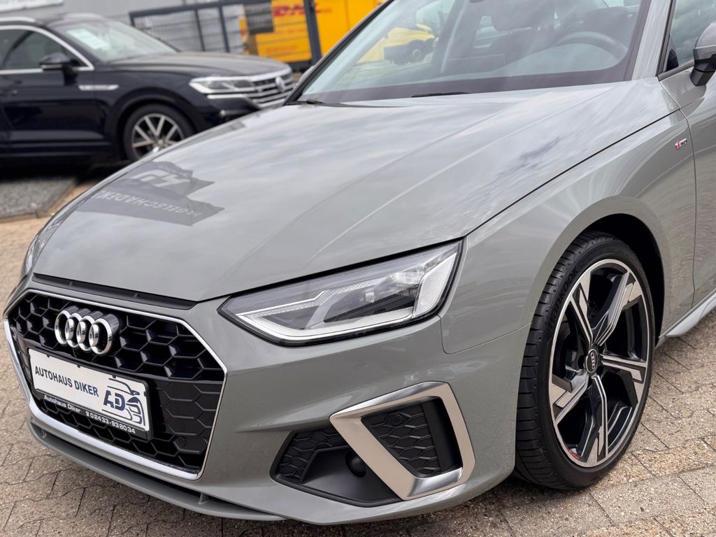Airbag Beifahrerseite abschaltbar, Audi connect (Notruf- und Assistance-System), Außenspiegel Wagenfarbe, Blinkleuchten LED in Außenspiegel integriert, Dachhimmel Stoff, Einstiegsleisten mit Aluminiumeinlage und Schriftzug, beleuchtet, Fahrassistenz-System: City-Notbremsfunktion (Audi pre sense City), Fensterzierleisten schwarz, Frontscheibe Akustikglas, Funkschlüssel, Fußmatten Velours, Geschwindigkeits-Begrenzeranlage, Heckdiffusor, Heckklappenöffnung automatisch, Heckleuchten LED, Innenausstattung: Dekoreinlagen Akzentteile in der Armaturentafel schwarz matt, Innenausstattung: Dekoreinlagen Diamantlack silbergrau, Isofix-Aufnahmen für Kindersitz, Karosserie: 4-türig, Klimaautomatik, Kopf-Airbag-System (Sideguard), Leichtlaufreifen, Mild-Hybrid 100 kW (Motor 2,0 Ltr. - 100 kW 16V TDI), Mild-Hybrid-Technologie, Modellpflege, Multi-Media-Interface MMI Basic Plus / MMI Radio Plus, Nichtraucher-Paket, Radioempfang digital (DAB), Reifendruck-Kontrollsystem, Schadstoffarm nach Abgasnorm Euro 6d, Scheibenwaschdüsen heizbar, Scheinwerfer Basis (LED - Technologie), SCR-System (AdBlue-Technologie), Seitenairbag vorn, Sitzbezug / Polsterung: Stoff Index, Sitze vorn manuell einstellbar, Sport-Fahrwerk, Start/Stop-Anlage, Stoßfänger Sport-Design (S-line), Universal-Schnittstelle Bluetooth, Wärmeschutzverglasung grün getönt