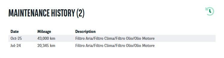 Documentazione Km con le manutenzioni effettuate
