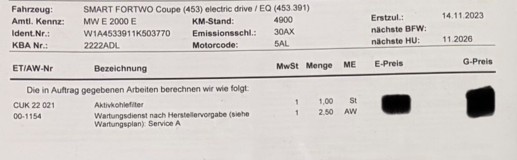 Wir bieten hier unseren sehr gut gepflegten Smart EQ ForTwo zum Kauf an. Aktuell nur 5201 Km. Kein Wartungsstau, Panoramadach, Premiumpaket.Letzte Wartung: 30.01.2016