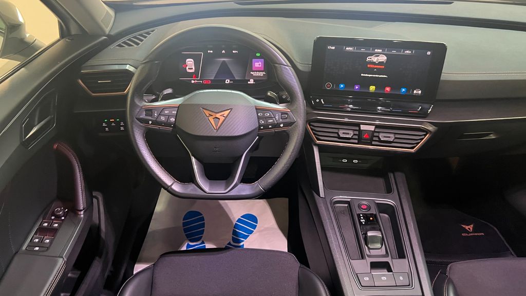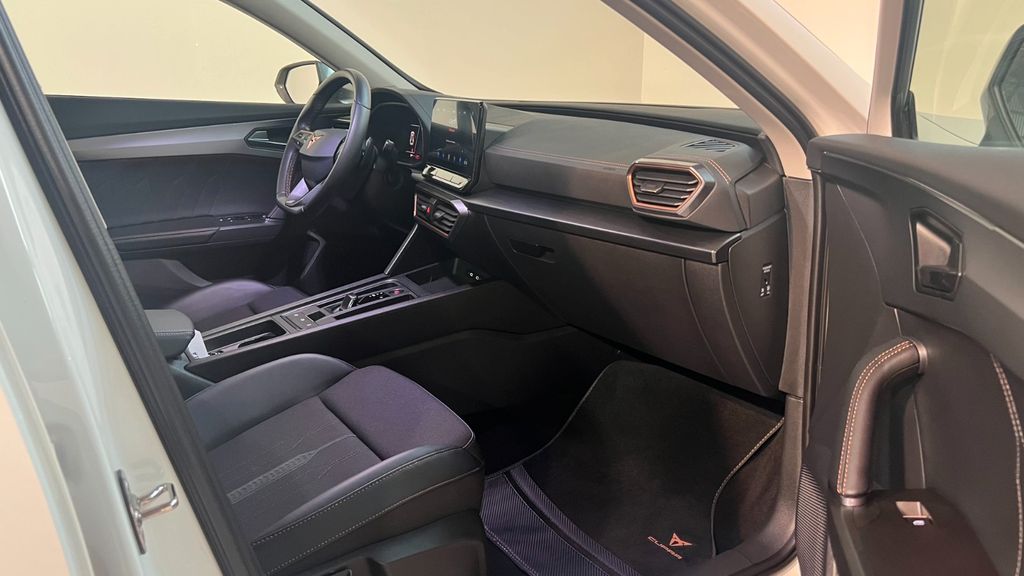 Audio-Navigationssystem mit Touchscreen Farbbildschirm, Uni-Lackierung, 7 Lautsprecher, Airbag Beifahrerseite abschaltbar, Airbag Fahrer-/Beifahrerseite, Antriebs-Schlupfregelung (ASR), Außenspiegel elektr. verstell-, heiz- und anklappbar mit Spiegelabsenkung und Welcome Light, Blinkleuchten LED in Außenspiegel integriert, Bluetooth-Schnittstelle mit Freisprecheinrichtung integriert, Dachreling schwarz, hochglänzend, Doppeltonhorn, Einstiegsleisten (Aluminium) vorn, beleuchtet, Elektron. Differentialsperre (XDS), Fahrassistenz-System: Fahrprofilauswahl (CUPRA Drive Profile), Fensterheber elektrisch vorn + hinten mit Komfortschaltung, Fensterzierleisten schwarz hochglänzend, Gepäckraumabdeckung / Rollo, Heckleuchten Voll-LED mit dynamischem Lichtband (Infinite Light), Isofix-Aufnahmen für Kindersitz an Rücksitz, Karosserie: 5-türig, Klimaanlage Climatronic 3-Zonen, Kombiinstrument digital (virtual cockpit), Kopf-Airbag-System, Laderaumboden variabel und herausnehmbar, Lendenwirbelstütze Sitz vorn links, verstellbar, Lendenwirbelstütze Sitz vorn rechts, verstellbar, Licht- und Sicht-Paket, LM-Felgen, Mittelarmlehne hinten, Mittelkonsole vorn mit Mittelarmlehne, Becherhalter, Ablagebox und Luftausströmer hinten, Motor 1,5 Ltr. - 110 kW 16V TSI ACT, Notrufsystem, Otto-Partikelfilter (OPF), Parkbremse elektrisch, Radioempfang digital (DAB+), Radstand 2679 mm, Reifen-Reparaturset, Rücksitzlehne geteilt/klappbar (1/3-2/3), Rücksitzlehnen umklappbar mit Fernentriegelung im Kofferraum, Schadstoffarm nach Abgasnorm Euro 6d, Seitenairbag, Seitenairbag vorn mitte (Central Airbag), Seitenscheiben hinten und Heckscheibe abgedunkelt, Sitz vorn links höhenverstellbar, Sitz vorn rechts höhenverstellbar, Sitzbezug / Polsterung: Stoff, Sonnenblende links mit Spiegel (beleuchtet), Sonnenblende rechts mit Spiegel (beleuchtet), Sportsitze vorn, Start/Stop-Anlage, Steckdose (12V-Anschluß) vorn, Steckdose 230V im Gepäckraum, USB-Ladeanschlüsse (2-fach, Typ C) für 2.Sitzreihe, USB-Schnittstelle vorn (2-fach, Typ C), Verzurrösen Koffer-/Laderaum, Warnanlage für Sicherheitsgurt-System, Wärmeschutzverglasung- Scheckheftgepflegt bei einer Seat/Cupra Vertragswerkstatt