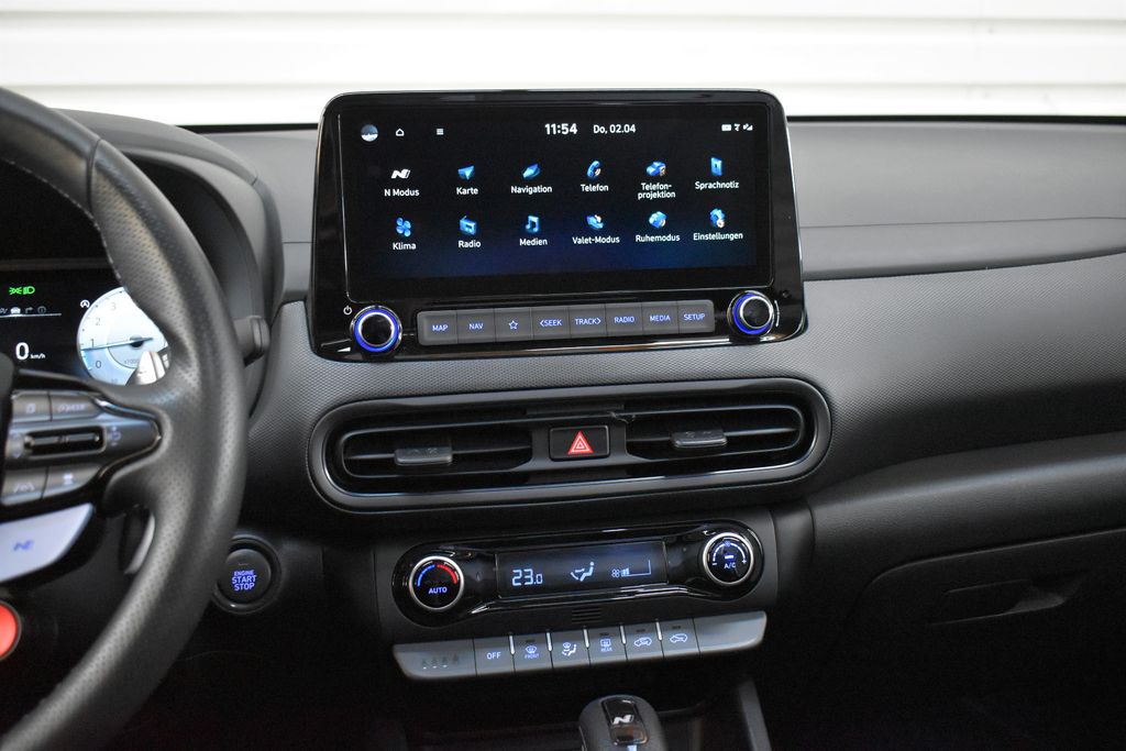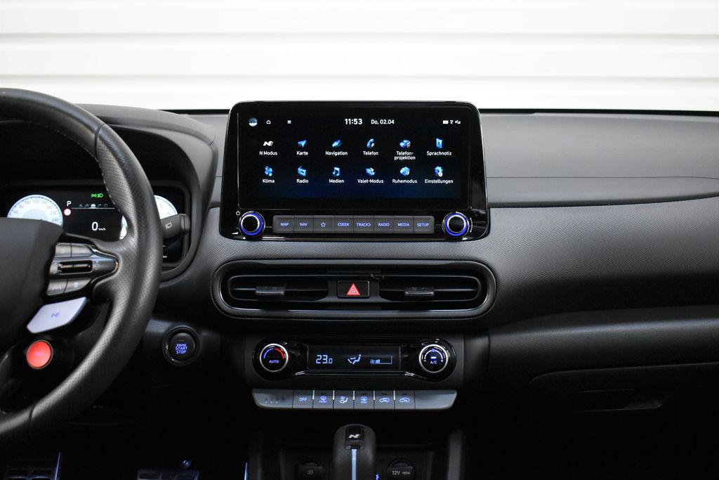 8 Lautsprecher, Ablagetasche an Vordersitzlehnen, Airbag Beifahrerseite, Airbag Beifahrerseite abschaltbar, Airbag Fahrerseite, Aktives Bremslicht (ESS), Ambiente-Beleuchtung, Audiosystem: Radio RDS, Auspuffanlage mit Klappensteuerung, Außenspiegel elektr. anklappbar, Außenspiegel elektr. verstell- und heizbar, beide, Außenspiegel Phantom Black, Blinkleuchten LED in Außenspiegel integriert, Bremsassistent, Dachhimmel schwarz, Dachreling, Dachspoiler, Digital Cockpit (Instrumentenanzeige Digital), Einschaltautomatik für Fahrlicht / Lichtsensor, Elektr. Bremskraftverteilung, Elektron. Differentialsperre (EDS) N Corner Carving Differential, Elektron. Stabilitätskontrolle (ESC) mit Bremsassistent, Fahrassistenz-System: aktiver Spurhalteassistent (LKAS, Lane Keep Assist System), Fahrassistenz-System: Aufmerksamkeits-Assistent, Fahrassistenz-System: Autonome Notbremsfunktion inkl. Frontkollisionswarnung (FCA), Fahrassistenz-System: Berganfahrhilfe, Fahrassistenz-System: Einparkhilfe vorn und hinten, Fahrassistenz-System: Fahrprofilauswahl (Drive Mode), Fahrassistenz-System: Fernlichtassistent, Fahrassistenz-System: Insassenalarm (Rear Occopant Alert, ROA), Fahrassistenz-System: Intelligente Beschleunigungskontrolle (Launch-Control), Fahrassistenz-System: Sicherheitssystem mit automatischem Notruf (ERA GLONASS / eCall), Fahrassistenz-System: Spurfolgeassistent (Lane Following Assist, LFA), Fahrassistenz-System: Spurhalteassistent, Warnsystem (LDWS, Lane Departure Warning System), Fahrassistenz-System: Verkehrsschildassistent, Fensterheber elektrisch hinten, Fensterheber elektrisch vorn, mit Auf-/Ab-Automatik, Freisprecheinrichtung Bluetooth, Frontscheibe mit Bandfilter oben, Frontscheibe wärmedämmend, Gegenlenkunterstützung (Vehicle Stability Management, VSM), Gepäck-/Laderaumleuchte, Gepäcknetz im Koffer-/Laderaum, Gepäckraumabdeckung / Rollo, Geschwindigkeits-Begrenzeranlage (Speed-Limiter), Geschwindigkeits-Regelanlage (Tempomat) mit Abstandsregelung ACC, Getriebe 8-Gang - Doppelkupplungsgetriebe DCT, Getränkehalter hinten, Getränkehalter vorn, Gurtstraffer, Head-up-Display, Heckleuchten LED, Heckscheibe heizbar, Induktionsladeschale für Smartphone, Innenausstattung: Luftdüsen farbig, Innenspiegel mit Abblendautomatik, Isofix-Aufnahmen für Kindersitz, Karosserie: 5-türig, Klimaautomatik, Kopf-Airbag-System, Kopfstützen hinten verstellbar, Kühlergrill schwarz (glanzlackiert), Lendenwirbelstütze Sitz vorn links, elektr. verstellbar, Lenkrad (Sport/Leder), Lenkrad heizbar, Lenkrad mit Multifunktion, Lenkrad mit Schaltwippen, Lenksäule (Lenkrad) höhenverstellbar, Lenksäule (Lenkrad) längsverstellbar, Leseleuchte, Lifetime MapCare (Internetbasierende Dienste), LM-Felgen, Mittelarmlehne hinten, Modellpflege, Motor 2,0 Ltr. - 206 kW TGDI KAT, Motorhaubenisolierung, Navigationssystem, Otto-Partikelfilter (OPF), Pedale Aluminium, Radioempfang digital (DAB+), Radstand 2600 mm, Reifen-Reparaturkit, Reifendruck-Kontrollsystem, Rückfahrkamera, Rücksitzlehne geteilt/klappbar, Schadstoffarm nach Abgasnorm Euro 6d, Schalt-/Wählhebelgriff Leder mit Metall-Applikationen, Scheibenbeschlagerkennung / Regelung, Scheinwerfer Voll-LED, Seitenairbag vorn, Seitenschweller schwarz, Service-System: Remote Services (Blue Link), Sicherheitsgurte vorn höhenverstellbar, Sitz vorn links höhenverstellbar, Sitz vorn rechts höhenverstellbar, Sitzheizung vorn, Sonderlackierung Ignite Flame Uni, Sonnenblenden mit Spiegel (beleuchtet), Sound-System KRELL, Sportsitze, Start-Stop-Knopf, Start/Stop-Anlage, Touchscreen-Farbdisplay (10,25 Zoll), Türgriffe außen Wagenfarbe, Türgriffe innen silber, Unterfahrschutz (Silber), USB-Anschluss Mittelkonsole, Verglasung hinten abgedunkelt (Privacy Glass), Warnanlage für Sicherheitsgurte, Fahrer-/Beifahrerseite, Wireless SmartLink (Apple CarPlay), Wärmeschutzverglasung, Ambiente-Beleuchtung, Head-up-Display, Innenspiegel automatisch abblendend, Regensensor, Sitzheizung vorn