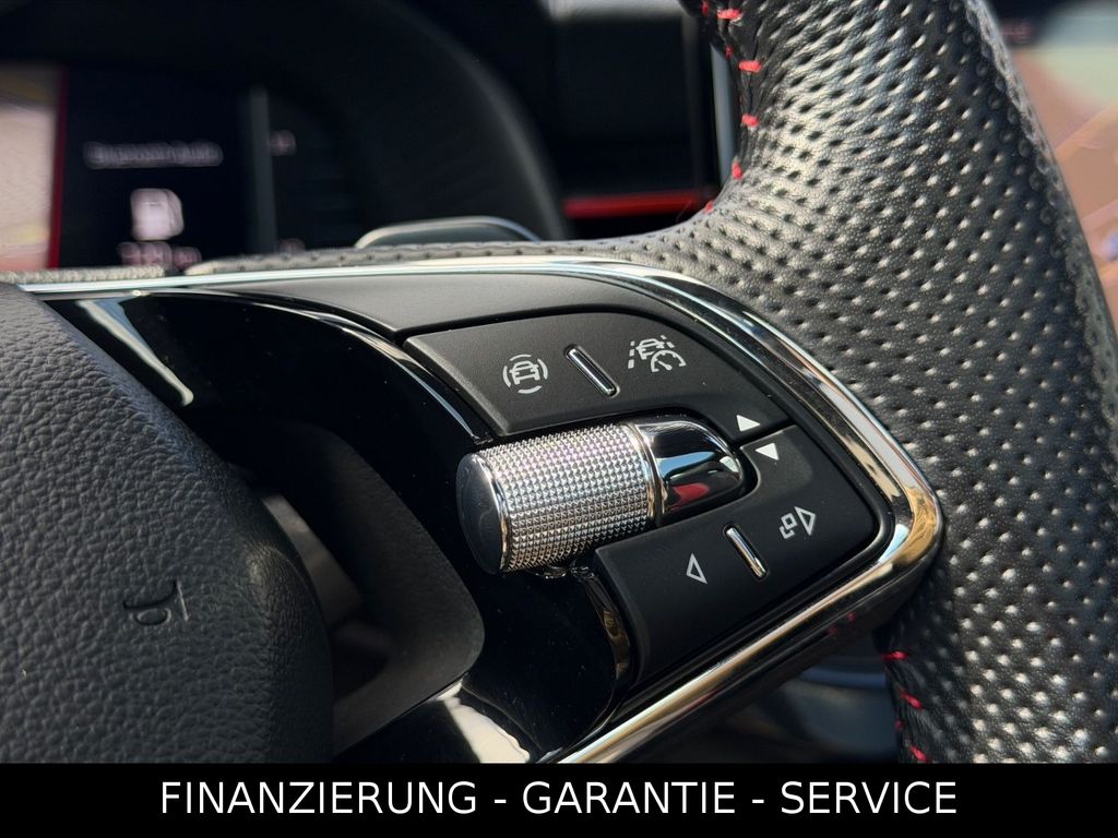- Sonderausstattung:Ambiente-Beleuchtung LED in Rot, Anhängerkupplung (Kugelkopf mit elektr. Entriegelung, schwenkbar) inkl. Adapter, Außenspiegel elektr. anklappbar, alle Spiegel mit Abblendautomatik, Business & Reise-Paket, Fahrassistenz-System: Spurwechselassistent (Blind Spot Detection), Innenausstattung: Dekoreinlagen Black Dots, Laderaumboden variabel und herausnehmbar, Licht- und Sicht-Paket, Metallic-Lackierung, Mittelarmlehne hinten, Reserverad als Notrad, Sound-System mit 10 Lautsprecher, Sport-FahrwerkWeitere Ausstattung:Ablagefach für Regenschirm, Ablagefach mit Cargo-Organizer (Gepäck-/Laderaum), Ablagetasche an Vordersitzlehnen, Airbag Beifahrerseite abschaltbar, Airbag Fahrer-/Beifahrerseite, Antriebs-Schlupfregelung (ASR), Außenspiegel schwarz lackiert, Bremsassistent, Dachhimmel schwarz, Dachspoiler, Edelstahlpedale Sportdesign, Einparkhilfe hinten, Elektr. Bremskraftverteilung (EBV), Elektron. Differentialsperre (EDS), Elektron. Querdifferentialsperre (XDS), Fahrassistenz-System: Auffahrwarnsystem mit City-Notbremsfunktion (Frontradar-Assistent), Fahrassistenz-System: Berganfahr-Assistent (Hill-Holder), Fahrassistenz-System: Einschaltautomatik für Fahrlicht (Fahrlichtassistent), Fahrassistenz-System: Multikollisionsbremse (Multi Collision Brake), Fensterheber elektrisch vorn + hinten, Freisprechanlage Telefon mit Bluetooth, Heckklappe mit langer Heckscheibe, Heckleuchten LED mit dynamischem Blinklicht, Heckscheibe heizbar, Infotainment-Paket Basic, Innenraumfilter: Staub- und Pollenfilter, Isofix-Aufnahmen für Kindersitz an Beifahrersitz, Isofix-Aufnahmen für Kindersitz an Rücksitz, Karosserie: 5-türig, Kennzeichenbeleuchtung LED, Klimaanlage Climatronic 2-Zonen, Kopf-Airbag-System, Lendenwirbelstütze Sitz vorn links, Lendenwirbelstütze Sitz vorn rechts, Lenkrad (Sport/Leder - 3-Speichen, unten abgeflacht) mit Multifunktion und Schaltfunktion, Lenksäule (Lenkrad) verstellbar (vertikal / axial), Lichtassistent (Coming Home, Leaving Home), LM-Felgen, Motor 1,5 Ltr. - 110 kW 16V TSI ACT, Multifunktionsanzeige, Netzprogramm im Kofferraum, Notrufsystem, Otto-Partikelfilter (OPF), Panoramadach / Ausstelldach (Glas), Radioempfang digital (DAB+), Reifendruck-Kontrollsystem, Rücksitzbank klappbar 1/3-2/3, Rücksitzlehne geteilt/klappbar (1/3-2/3), Schadstoffarm nach Abgasnorm Euro 6d, Schalt-/Wählhebelgriff Leder, Scheinwerfer LED mit adaptiver Lichtverteilung (AFS), Seitenairbag vorn, Seitenscheiben hinten und Heckscheibe abgedunkelt (SunSet), Service-System: Remote Services, Servolenkung elektronisch (Servotronic), Sitz vorn links höhenverstellbar, Sitz vorn rechts höhenverstellbar, Sitzbezug / Polsterung: Monte Carlo, Sonnenblende links mit Spiegel, Sonnenblende rechts mit Spiegel, Start-Stop-Knopf (Start/Stop-Anlage ohne Schlüssel), Start/Stop-Anlage, Steckdose (12V-Anschluß) im Koffer-/Laderaum, Textilfussmatten, Türgriffe außen Wagenfarbe, USB-Schnittstelle vorn (2-fach, Typ C), Verzurrösen Koffer-/Laderaum, Rückfahrkamera Rear View, Seitenscheiben hinten und Heckscheibe abgedunkelt