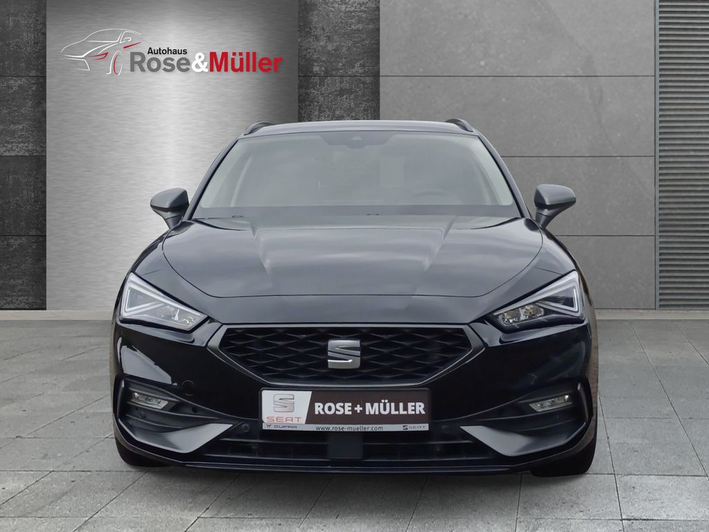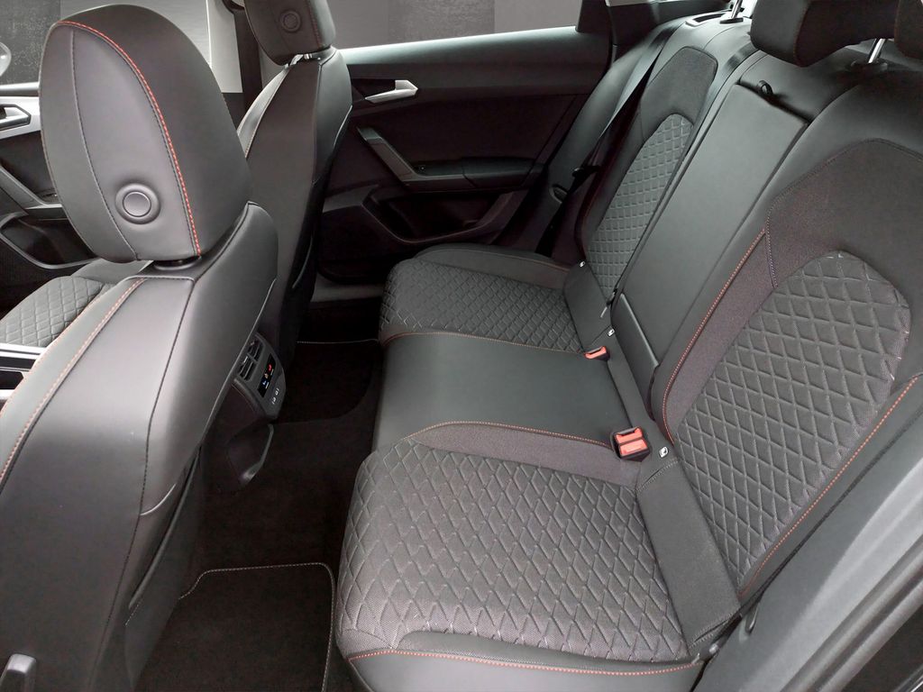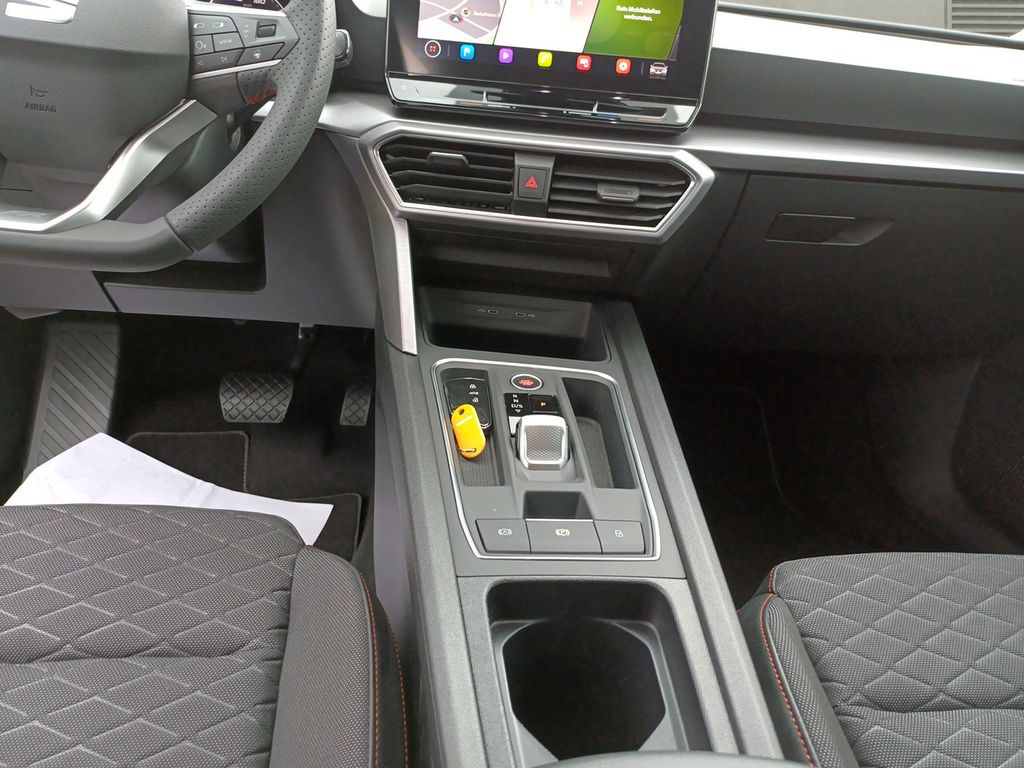 6 Lautsprecher, Ablagetasche an Vordersitzlehnen, Airbag Beifahrerseite abschaltbar, Airbag Fahrer-/Beifahrerseite, Antriebs-Schlupfregelung (ASR), Außenspiegel elektr. verstell-, heiz- und anklappbar mit Spiegelabsenkung, Außenspiegel grau, Blinkleuchten LED in Außenspiegel integriert, Bluetooth-Schnittstelle mit Freisprecheinrichtung integriert, Bordcomputer, Dachreling, Doppeltonhorn, Durchladeeinrichtung (Mittelarmlehne hinten), Einstiegsleisten beleuchtet, Elektron. Querdifferentialsperre (XDS), Fahrassistenz-System: Fahrprofilauswahl (SEAT Drive Profile), Fahrassistenz-System: Müdigkeitserkennung, Fahrassistenz-System: Spurhalteassistent, Fahrassistenz-System: Umfeldbeobachtungssystem (Front assist) mit City-Notbremsfunktion, Fensterheber elektrisch vorn + hinten mit Komfortschaltung, Gepäckraumabdeckung / Rollo, Handschuhfach beleuchtet, Innenraumlicht-Paket LED, Isofix-Aufnahmen für Kindersitz, Karosserie: 5-türig, Klimaanlage Climatronic 3-Zonen, Kofferraumbeleuchtung, Kombiinstrument digital (virtual cockpit), Kopf-Airbag-System, Laderaumboden variabel und herausnehmbar, Lendenwirbelstütze Sitz vorn links, verstellbar, Lendenwirbelstütze Sitz vorn rechts, verstellbar, Lenkrad (Sport/Leder) mit Multifunktion, LM-Felgen, Mild-Hybrid 110 kW (Motor 1,5 Ltr. - 110 kW eTSI ACT), Mobile Online Dienste Seat Connect, Nebelscheinwerfer LED mit Abbiegelicht, Notrufsystem, Otto-Partikelfilter (OPF), Parkbremse elektrisch mit Auto-Hold-Funktion, Radioempfang digital (DAB+), Reifenkontroll-Anzeige, Rücksitzlehne geteilt/klappbar (1/3-2/3), Rücksitzlehnen umklappbar mit Fernentriegelung im Kofferraum, Schadstoffarm nach Abgasnorm Euro 6d, Schalt-/Wählhebelgriff Leder, Seitenairbag, Seitenairbag vorn mitte (Central Airbag), Seitenscheiben hinten und Heckscheibe abgedunkelt, Sitz vorn links höhenverstellbar, Sitz vorn rechts höhenverstellbar, Sitzbezug / Polsterung: Stoff, Sport-Fahrwerk, Sport-Komfortsitze vorn, Start/Stop-Anlage, Steckdose (12V-Anschluß) im Koffer-/Laderaum, Steckdose (12V-Anschluß) vorn, Stoßfänger FR-Design, USB-Schnittstelle vorn (2-fach, Typ C), Verzurrösen Koffer-/Laderaum, Warnanlage für Sicherheitsgurt-System, Wärmeschutzverglasung