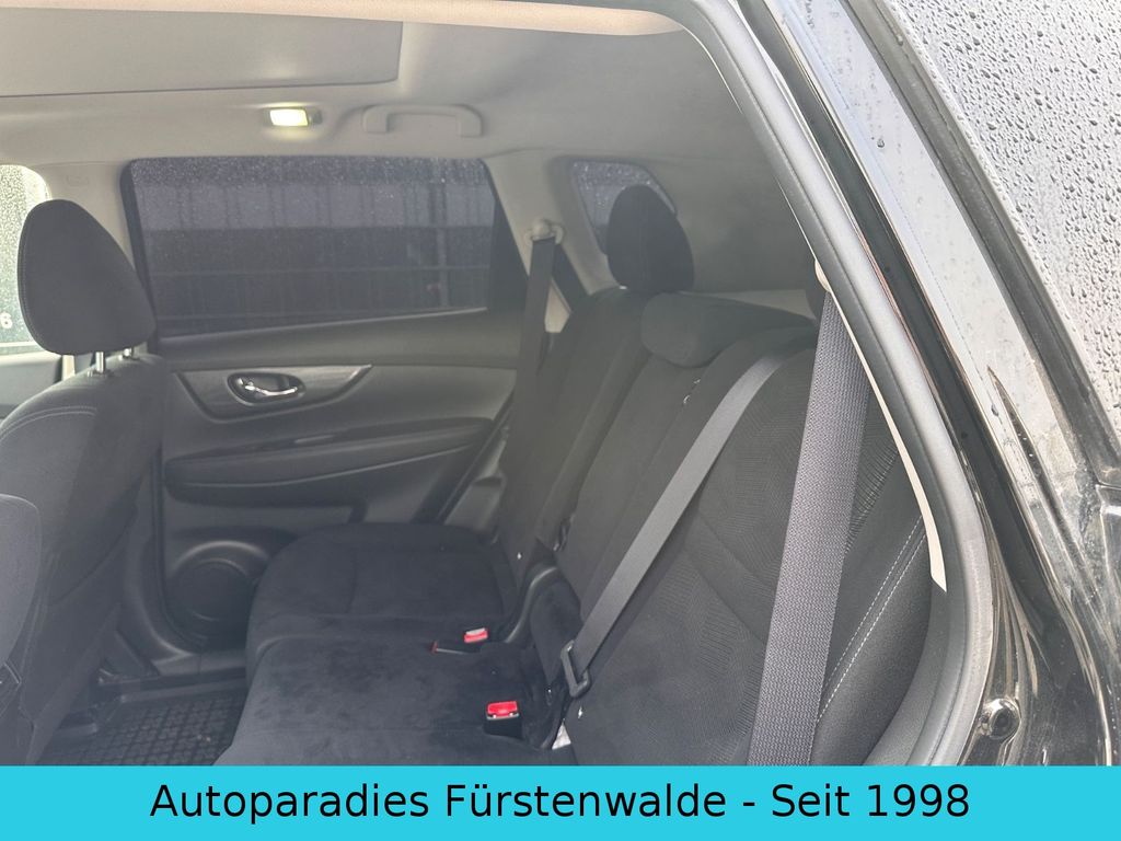 3. Bremsleuchte, Airbag Beifahrerseite abschaltbar, Airbag Fahrer-/Beifahrerseite und Seitenairbag vorn, Audio-/Bordcomputerbedienung am Lenkrad, Audiosystem: Radio/CD-Player mit 6 Lautsprecher, Automatische Fahrlichtschaltung, Außenspiegel elektr. verstell- und heizbar, Bordcomputer, Bremsassistent (Nissan Brake-Assist), Coming-Home-Lichtfunktion (Friendly Lightning), Einparkhilfe, Fahrassistenz-Paket Acenta, Fahrassistenz-System: Aktive Fahrkomfortregelung (Fahrwerksdämpfung), Fahrassistenz-System: Berganfahr-Assistent, Fahrassistenz-System: Kurvenbremskontrolle (Aktive Spurkontrolle), Fensterheber elektrisch vorn + hinten, Fernentriegelung Tankklappe, Freisprechanlage Bluetooth, Frontscheibe Verbundglas, Gurtstraffer, Heckscheibe heizbar, Innenspiegel mit Abblendautomatik, Isofix-Aufnahmen für Kindersitz, Karosserie: 5-türig, Kindersicherung, Klimaautomatik 2-Zonen, Komfortsitz vorn links, Komfortsitz vorn rechts, Kopf-Airbag-System, Kopfstützen vorn verstellbar, Lenksäule (Lenkrad) höhen-/längsverstellbar, Leseleuchte vorn, LM-Felgen, Mittelarmlehne hinten mit Getränkehalter, Motor 2,0 Ltr. - 130 kW dCi Diesel KAT, Nebelschlussleuchte, Parkbremse elektrisch, Radstand 2706 mm, Reifen-Reparaturset, Reifendruck-Kontrollsystem, Rücksitzbank verschiebbar, Schadstoffarm nach Abgasnorm Euro 6, Schalt-/Wählhebelgriff Leder, Schaltpunktanzeige, Sitz vorn links höhenverstellbar, Sitzausstattung: 5-Sitzer, Sitzbezug / Polsterung: Stoff, Sitzheizung vorn, Sonnenblenden mit Spiegel (beleuchtet), Start/Stop-Anlage, Steckdose (12V-Anschluß) in Mittelkonsole, Türgriffe außen verchromt, USB-Schnittstelle, Verglasung hinten abgedunkelt, Wärmeschutzverglasung mit UV-Schutz