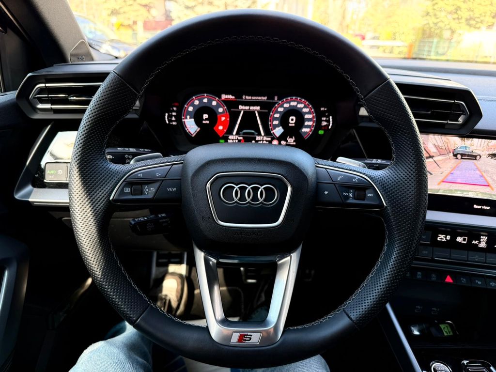 Erleben Sie sportliche Eleganz mit diesem gebrauchten Audi A3 Sportcoupé. Das Fahrzeug, erstmals zugelassen in 2025, präsentiert sich in einer auffälligen grünen Metallic-Lackierung mit schwarzem Teilledersitzbezug. Mit nur einem Vorbesitzer und lückenloser Servicehistorie bietet dieser A3 ein hervorragendes Preis-Leistungs-Verhältnis. Der 1,5-Liter-Motor mit 150 PS und Frontantrieb sorgt für dynamische Fahrleistungen bei gleichzeitiger Effizienz (Euro 6d-TEMP). Die Automatikschaltung mit Schaltwippen am Lenkrad ermöglicht komfortables und sportliches Fahren. Besonders beeindruckend ist die umfangreiche Ausstattung: Panorama-Glasdach, Faltdach, Sportssitze, adaptiver Tempomat und zahlreiche Fahrassistenzsysteme wie Spurhalteassistent und Kollisionsvermeidung. Das digitale Cockpit mit Navigationssystem, Touchscreen und kabelloser Ladestation rundet das moderne Fahrerlebnis ab.- Grüne Metallic-Lackierung mit schwarzem Teilledersitzbezug