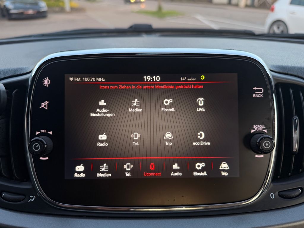 Airbag Fahrer-/Beifahrerseite, Autom. Begleitfunktion der Beleuchtung (Follow me home), Außenspiegel elektr. verstell- und heizbar, beide, Außenspiegel Wagenfarbe, Beifahrerairbag abschaltbar, Bordcomputer, Fahrassistenz-System: Bremsassistent, Geschwindigkeits-Begrenzeranlage, Heckscheibe heizbar, Infotainment-System: UConnect mit MP3-Player (Touchscreen 7"), Isofix-Aufnahmen für Kindersitz an Rücksitz, Karosserie: 3-türig, Knieairbag Fahrerseite, Kopf-Airbag-System vorn und hinten, Lenkrad (Sport/Leder) mit Multifunktion, Lenksäule (Lenkrad) höhenverstellbar, Modellpflege, Motor 1,2 Ltr. - 51 kW KAT, Positions-Memory für Beifahrersitz, Reifen-Reparaturkit, Reifendruck-Kontrollsystem, Rücksitz geteilt / klappbar, Schadstoffarm nach Abgasnorm Euro 6, Seitenairbag vorn, Seitenscheiben hinten und Heckscheibe abgedunkelt, Sport-Paket, Steckdose (12V-Anschluß) im Armaturenbrett, Stoßfänger in Sport-Design, Tankdeckel abschließbar, Wärmeschutzverglasung, Seitenscheiben hinten und Heckscheibe abgedunkelt