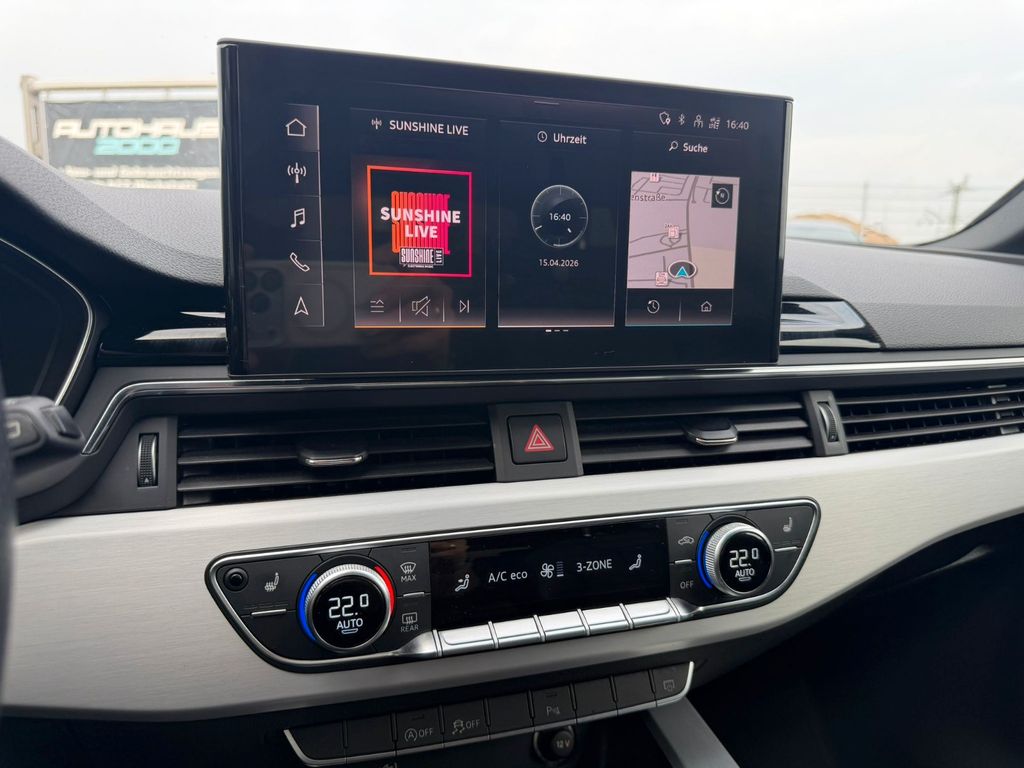 Airbag Beifahrerseite abschaltbar, Audi connect (Notruf- und Assistance-System), Außenspiegel Wagenfarbe, Blinkleuchten LED in Außenspiegel integriert, Dachreling schwarz, Fahrassistenz-System: City-Notbremsfunktion (Audi pre sense City), Fensterzierleisten schwarz, Frontscheibe Akustikglas, Funkschlüssel, Fußmatten Velours, Geschwindigkeits-Begrenzeranlage, Isofix-Aufnahmen für Kindersitz, Karosserie: 4-türig, Kopf-Airbag-System (Sideguard), Leichtlaufreifen, Mild-Hybrid 120 kW (Motor 2,0 Ltr. - 120 kW 16V TDI), Mild-Hybrid-Technologie, Modellpflege, Multi-Media-Interface MMI Basic Plus / MMI Radio Plus, Nichtraucher-Paket, Radioempfang digital (DAB), Reifen-Reparaturkit, Reifendruck-Kontrollsystem, Rücksitzlehne geteilt/klappbar (40:20:40), Schadstoffarm nach Abgasnorm Euro 6d-TEMP, Scheibenwaschdüsen heizbar, SCR-System (AdBlue-Technologie), Seitenairbag vorn, Sitze vorn manuell einstellbar, Standard-Fahrwerk, Start/Stop-Anlage, Stoßfänger Ausführung: advanced, Uni-Lackierung, Universal-Schnittstelle Bluetooth, Wendeladeboden (Ladeboden)
