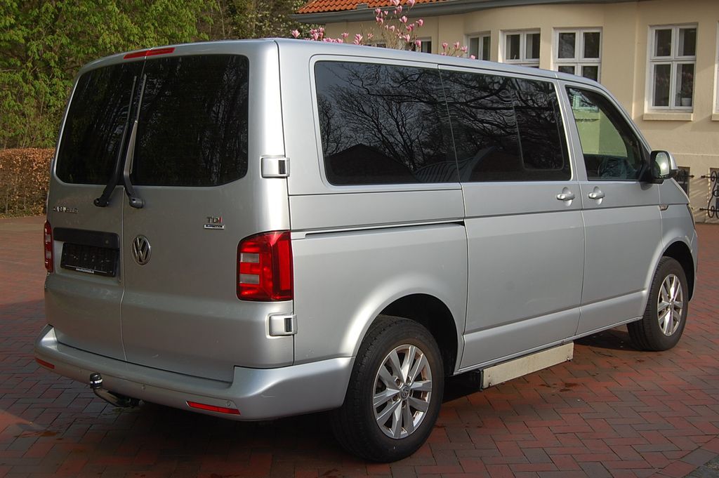 Sonderausstattung:Audio-Navigationssystem Discover Media (Touchscreen-Farbdisplay), Ausführung: BlueMotion Technology, Außenspiegel elektr. verstell-, heiz- und anklappbar, Fahrassistenz-System: Einparkhilfe vorn und hinten, Fenster im Lade-/FG-Raum: - schiebbar vorn, feststehend hinten links, Fenster im Lade-/FG-Raum: - schiebbar vorn, feststehend hinten rechts, Funkschlüssel (4) klappbar, Heckflügeltüren mit Verglasung, Innenentriegelung Heckklappe / Heckflügeltüren, Isofix-Aufnahmen für Kindersitz an Rücksitz, Klimaautomatik Climatronic (Fahrerhaus + Lade-/Fahrgastraum), Lackierung: Metallic-Lackierung, LM-Felgen 6,5x16 (Clayton), Mobile Online Dienste App-Connect, Mobiltelefon Schnittstelle und WLAN-Hotspot, Multimedia-Schnittstelle USB (iPhone / iPod) mit AUX-IN, Scheibenwaschdüsen beheizt und Anzeige für Waschwasserstand, Schiebe-/Hebedach elektr. (Glas) vorn, Schiebetüren Lade-/Fahrgastraum links/rechts, elektr. betätigt, Sitze im Fahrerhaus: Fahrersitz heizbar, Zusatzheizung (Warmwasser) mit Standheizfunktion und Fernbedienung