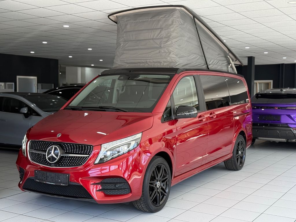 3. Bremsleuchte, Ablagenetz an Vordersitzlehne links, Ablagenetz an Vordersitzlehne rechts, Adaptives Bremslicht, Airbag Beifahrerseite, Airbag Fahrerseite, Anzeige für Waschwasserstand, Auflastung auf 3,1 t, Ausführung: Marco Polo, Außenspiegel asphärisch, beide, Außenspiegel elektr. verstell- und heizbar, beide, Außenspiegel mit integrierter Blinkleuchte, Außentemperaturanzeige, Batterie zusätzlich (verstärkt), BlueEfficiency-Paket, Bodenbelag: Teppich im Fahrerraum, DAB-Tuner (Radioempfang digital), Dachbett, Design- und Ausstattungslinie Horizon Edition, Einschaltautomatik für Fahrlicht, Einstiegsgriff hinten, Einstiegsleuchten, Fahrassistenz-System: Anfahr-Assistent (Berganfahr-Assistent), Fahrassistenz-System: Attention-Assist (Müdigkeitserkennungs-Sensor), Fahrassistenz-System: Pannenmanagement, Fahrassistenz-System: Seitenwind-Assistent, Fenster für hintere Türen / Heckklappe mit Wisch-/Waschanlage, Fenster im Lade-/FG-Raum: - elektr. ausstellbar, hinten links/rechts, Fenster im Lade-/FG-Raum: - feststehend, vorn links, Fenster im Lade-/FG-Raum: - feststehend, vorn rechts, Feststellbremse elektrisch, Feststeller Schiebetür (Aktiv), Fußraumbeleuchtung vorn, Generator 250 A, Getriebe Automatik GTronic - (9-Stufen), Gurtstraffer, Haltegriffe im Fond, Handschuhfach abschließbar, Harnstofftank (AdBlue): 24 Ltr., Heckklappe, Heckscheibe aufstellbar, Heckscheibe heizbar, Intelligent Light System LED, Karosserie/Aufbau: lang, Karosserie/Aufbau: Motor Caravan, Karosserievariante: Aufstelldach, Kindersicherung, Klimaautomatik Fond (Tempmatik), Komfortbeleuchtung im Fahrgast-/Laderaum, Kommunikationsmodul (LTE) für digitale Dienste, Kommunikationsmodul Mercedes me connect (Internetbasierende Dienste), Kopf-Airbag-System (Windowbag), Kopf-Schulter-Airbag (Thoraxbag) Fahrer-/Beifahrerseite, Kraftstofftank mit Falschbetankungsschutz, Kraftstofftank: vergrößert, Lenkrad (Lenksäule mech. verstellbar), Lenkrad mit Multifunktion inkl. Reiserechner, Leuchtweitenregelung, Marco Polo Horizon Edition, Mercedes-Benz Notrufsystem, Metallic-Lackierung, Modellpflege, Motor 2,0 Ltr. - 140 kW CDI KAT, Nebelschlussleuchte, PKW-Zulassung, Radstand 3200 mm, Reifendruck-Kontrollsystem, Schadstoffarm nach Abgasnorm Euro 6d, Scheibenwischer mit Regensensor, Schiebetür Lade-/Fahrgastraum rechts, SCR-System (AdBlue-Technologie), Servolenkung elektro-mechanisch, Sicherheitsgurt-System mit Warnanlage (Beifahrerseite), Sicherheitsgurt-System mit Warnanlage (Fahrer-/Beifahrerseite), Sitzausstattung: Schnellverriegelung für Sitzschienen-System, Sitzbezug / Polsterung: Stoff, Sitze im Fahrerhaus: Beifahrersitz Komfort, drehbar, 1 Armlehne, Sitze im Fahrerhaus: Fahrersitz heizbar, Sitze im Fahrerhaus: Fahrersitz Komfort, drehbar, 1 Armlehne, Sitze im Fahrerhaus: Fahrersitz mit Lendenwirbelstütze, Sitze im Lade-/FG-Raum: 2.Reihe, 3er-Sitzbank, Sitz-/Liegebank, Sonnenblenden mit Spiegel (beleuchtet), Spiegel-Paket, Steckdose (12V-Anschluß) im Lade-/Fahrgastraum, Steckdosen (12V-Anschluß) im Lade-/Fahrgastraum, 2-fach, Stoßfänger / Stoßf.-Leiste seitlich + Griff an Heckklappe lackiert, Trennrelais bei Batterie zusätzlich, Umfeldleuchte in Heckklappe, Verglasung hinten abgedunkelt / Schwarzglas, Vlies-Batterie 92 Ah, Vorbereitung Navigationssystem (für Multimediasystem MBUX), Warmluftkanal zum Lade-/Fahrgastraum, Wartungsintervall-Anzeige Assyst, Wärmeschutzverglasung, Zuheizer