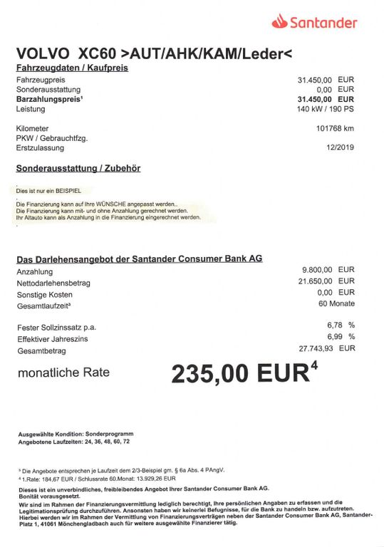 Inzahlungnahme Ihre Altfahrzeuges kann in die Finanzierung als Anzahlung gerechnet werden.